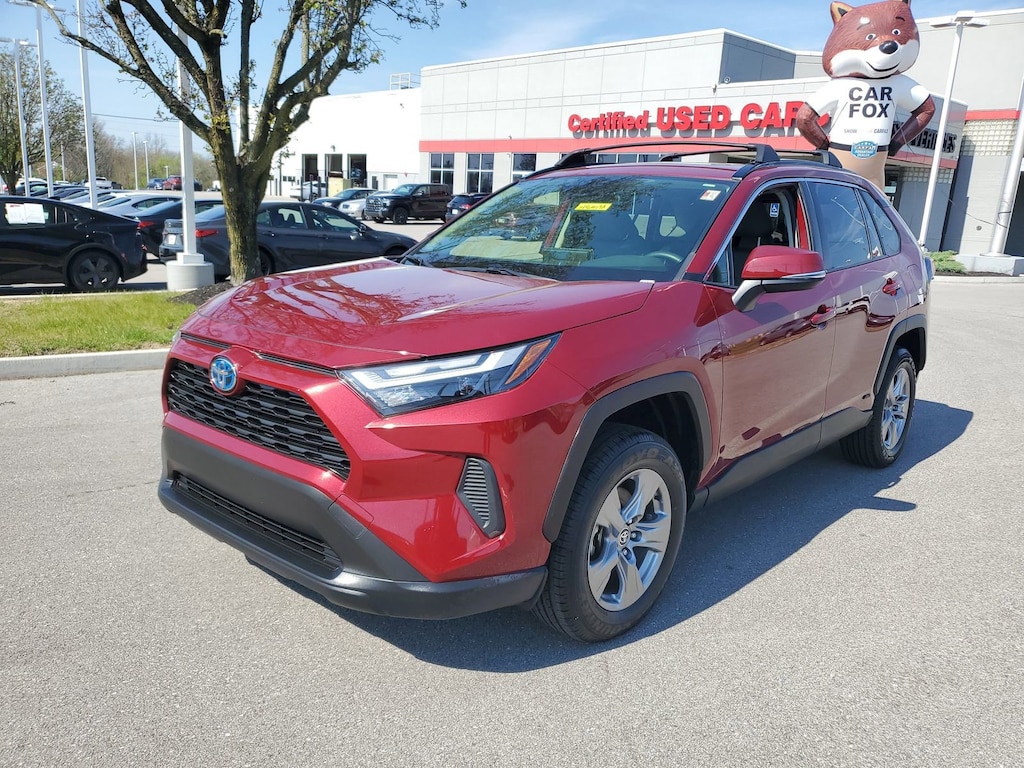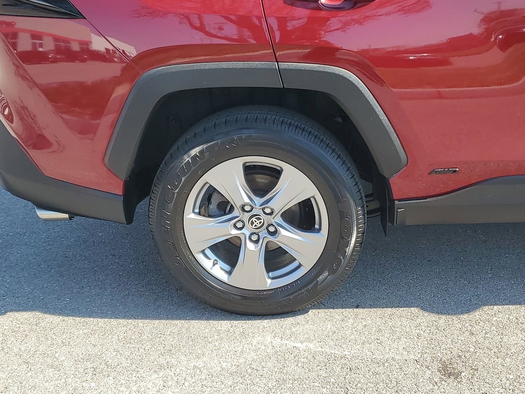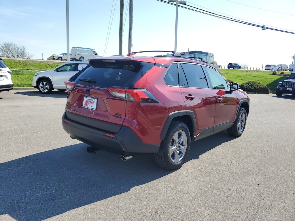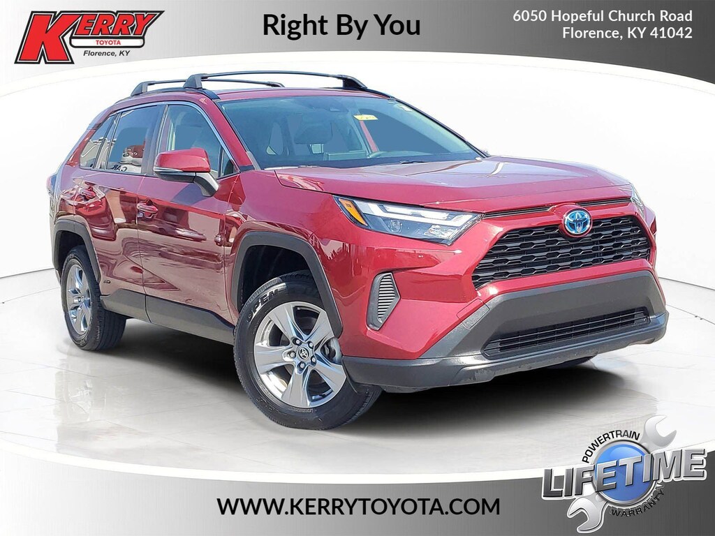 Proudly serving Cincinnati, Florence, Alexandria, Dayton, Hamilton, Dry Ridge, Lexington, Louisville, Nicholasville. Certified. Ruby Flare Pearl 2023 Toyota RAV4 Hybrid XLE AWD eCVT 2.5L 4-Cylinder 6 Speakers, Alloy wheels, AM/FM radio: SiriusXM, Auto High-beam Headlights, Blackout Emblem Overlays (TMS), Brake assist, Bumpers: body-color, Convenience Package, Delay-off headlights, Electronic Stability Control, Emergency communication system: Safety Connect (1-year trial), Exterior Parking Camera Rear, Front Door Smart Key System w/Push Button Start, Front Seat Heating, Fully automatic headlights, Heated 3-Spoke Leather Steering Wheel, Heated door mirrors, Knee airbag, Lane Departure Warning System, Low tire pressure warning, Panic alarm, Passenger door bin, Power door mirrors, Radio data system, Radio: AM/FM/XM Audio System, Rear window wiper, Speed control, Spoiler, Tilt & Slide Moon Roof, Traction control, Turn signal indicator mirrors, Variably intermittent wipers, Wheels: 17" x 7.0J Silver Aluminum Alloy, XLE Grade Weather Package.