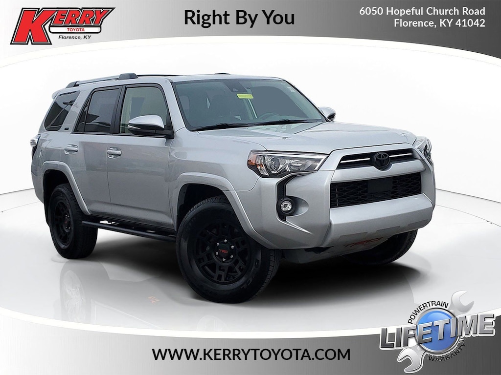 Proudly serving Cincinnati, Florence, Alexandria, Dayton, Hamilton, Dry Ridge, Lexington, Louisville, Nicholasville. Certified. Silver 2024 Toyota 4Runner SR5 Premium 4WD 5-Speed with ECT 4.0L V6 DOHC 24V