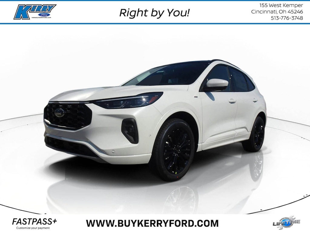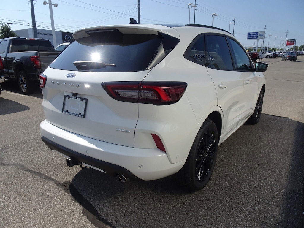 White Metallic 2024 Ford Escape ST-Line Elite AWD 8-Speed Automatic EcoBoost 2.0L I4 GTDi DOHC Turbocharged VCT AWD, Active Park Assist 2.0, Black Roof-Rack Side Rails, Class II Trailer Tow Package, Easy Access Cargo Shade, Equipment Group 501A, HD Radio, Head-Up Display, Heated Leather-Trimmed Front Sport Contour Seats, Navigation system: Connected Navigation, Panoramic Vista Roof, Premium Technology Package, Radio: B&O Sound System by Bang & Olufsen.