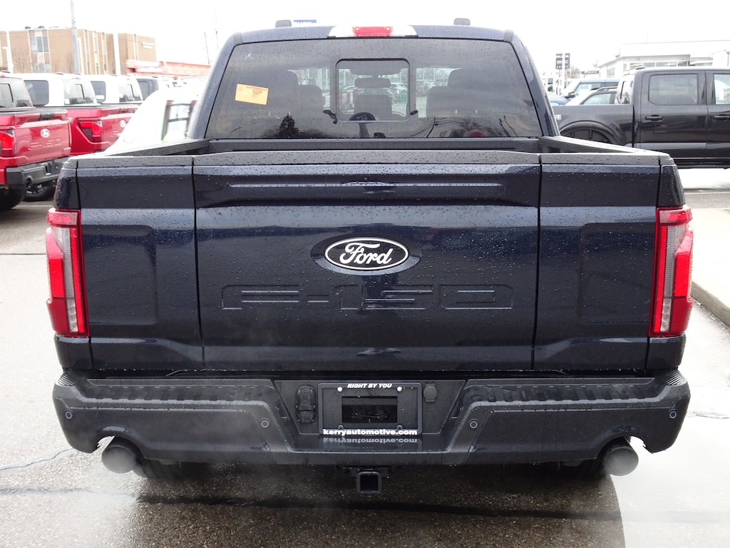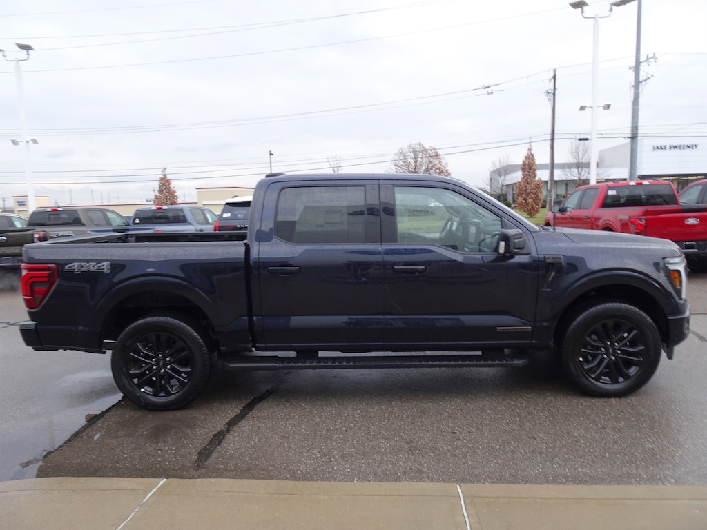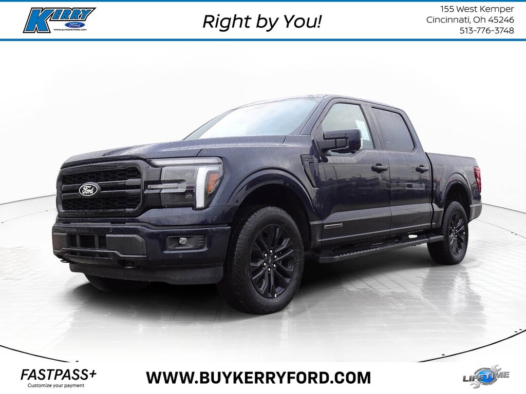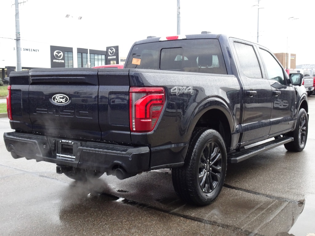 Blue Metallic 2025 Ford F-150 Lariat 4WD 10-Speed Automatic 3.5L PowerBoost Full-Hybrid V6 3.5L PowerBoost Full-Hybrid V6, 4WD, 2nd Row Heated Seats, 4 Pickup Box Tie-Down Plates, ActiveX Trimmed Bucket Seats (B), Ambient Lighting - Ice Blue Color Only, Bed Utility Package, Black Exterior Badging, Black Grille, Black Taillamp Bezels, Body-Color Front & Rear Bumpers, Body-Color Skull Caps & Door Handles, Console Worksurface, Dark Interior Appliques, Equipment Group 502A High, Gray Box Side Decal, Heads-Up Display, Illuminated Driver & Passenger Visors, Integrated Trailer Brake Controller, Lariat Black Appearance Package, LED Box Lighting, Matte Black Tailgate F-150 Decal, Mobile Office Package, Partitioned Lockable Rear Storage, Power Tailgate, Power-Sliding Rear Window, Pro Access Tailgate, Radio: B&O Unleashed Sound System by Bang & Olufsen, Tow/Haul Package, Wheels: 20" Chrome-Like PVD, Wireless Charging.