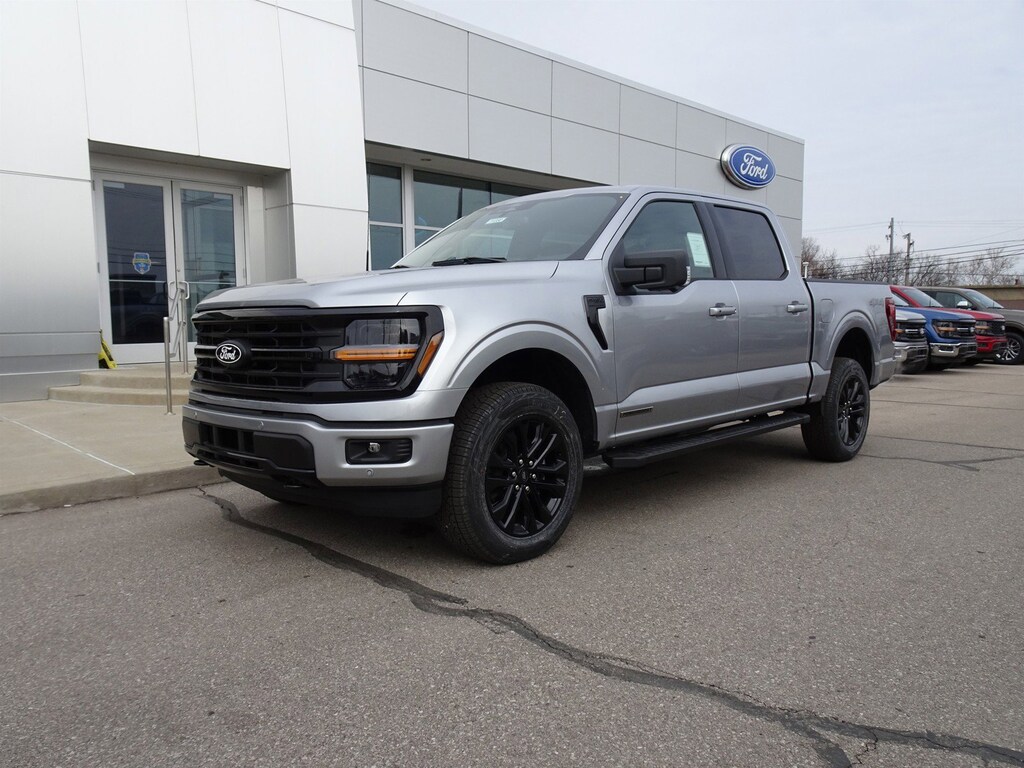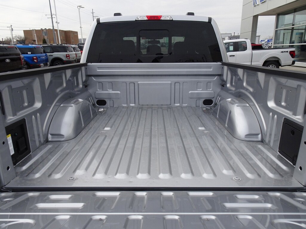 Silver Metallic 2025 Ford F-150 XLT 4WD 10-Speed Automatic 3.5L PowerBoost Full-Hybrid V6 F-150 XLT, 4D SuperCrew, 3.5L PowerBoost Full-Hybrid V6, 10-Speed Automatic, 4WD, Silver Metallic, Black Cloth, 360 Degree Camera, 400W Cab & Bed Outlets, 6" Angular Bright Anodized Step Bar, Adaptive Cruise Control w/Stop & Go, Auto-Dimming Rear-View Mirror, Black Painted Grille w/Chrome Center Bar, Chrome Door & Tailgate Handles, Chrome Single-Tip Exhaust, Cloth 40/Console/40 Front Seats, Connected Navigation, Console Worksurface, Driver State Detection, Dual-Zone Electronic Automatic Temperature Control, Equipment Group 302A Mid, Evasive Steering Assist, Ford Co-Pilot360 Assist 2.0, Front Parking Sensors, Heated Front Seats, Integrated Trailer Brake Controller, Intelligent Access w/Push Button Start, Mobile Office Package, Partitioned Lockable Rear Storage, Power Glass Heated Sideview Mirrors, Power-Sliding Rear Window, Remote Start System w/Remote Tailgate Release, Tow/Haul Package, Towing Technology, Wrapped Steering Wheel.