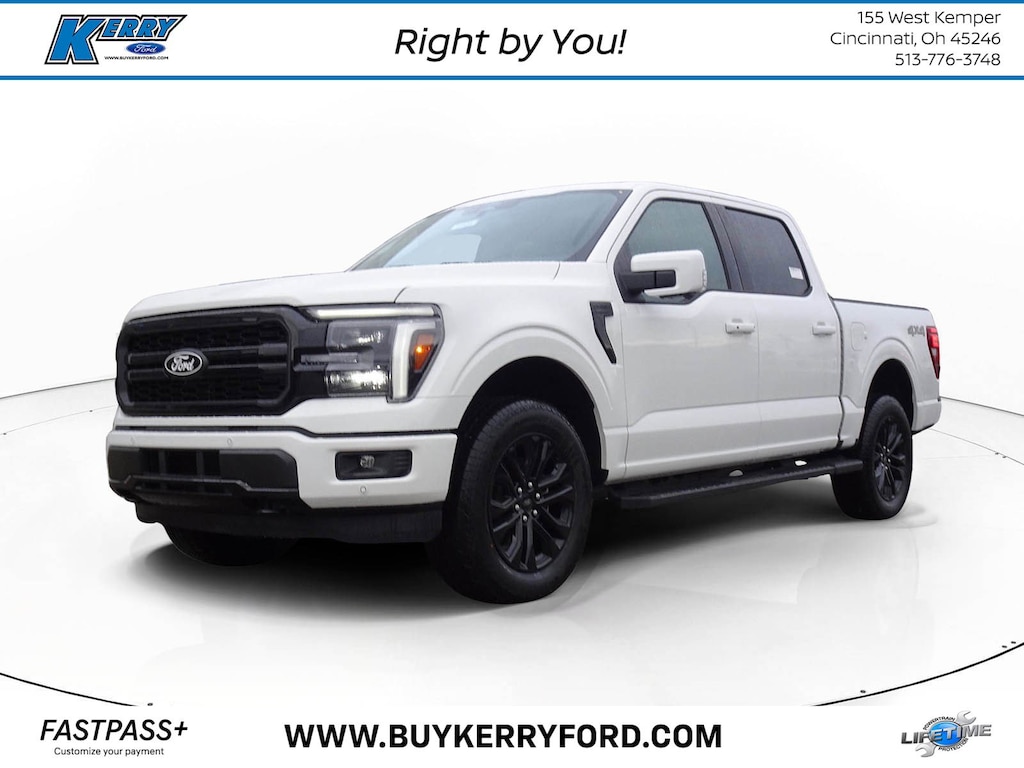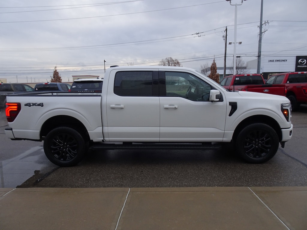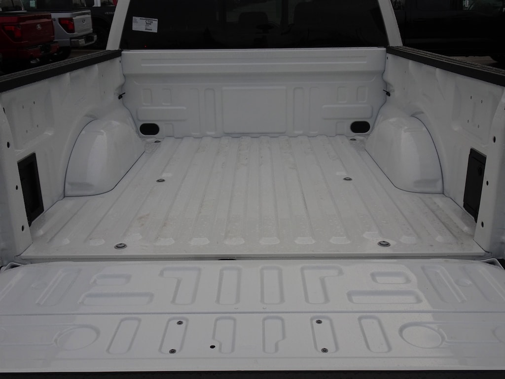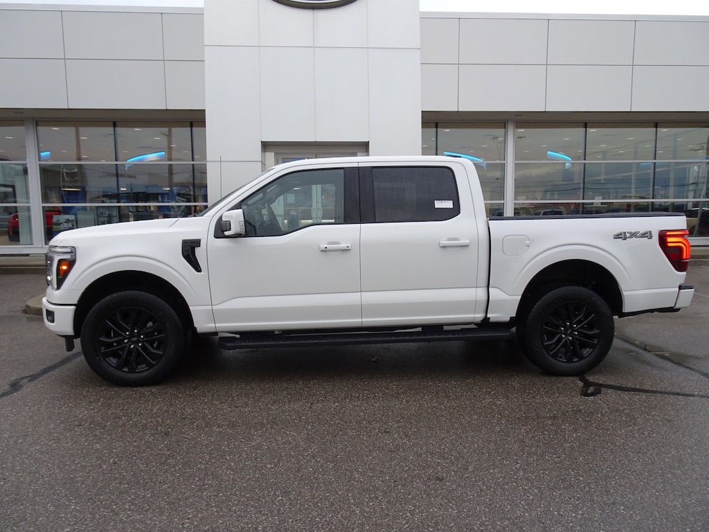 White Metallic 2025 Ford F-150 Lariat 4WD 10-Speed Automatic 3.5L V6 EcoBoost 3.31 Axle Ratio, 4-Wheel Disc Brakes, 8 Speakers, ABS brakes, ActiveX Trimmed Bucket Seats, Adjustable pedals, Air Conditioning, Alloy wheels, AM/FM radio: SiriusXM with 360L, Auto High-beam Headlights, Auto-dimming door mirrors, Auto-dimming Rear-View mirror, Automatic temperature control, Brake assist, Bumpers: chrome, Chrome wheels, Compass, Delay-off headlights, Driver door bin, Driver vanity mirror, Dual front impact airbags, Dual front side impact airbags, Electronic Stability Control, Emergency communication system: SYNC 4 911 Assist, Front anti-roll bar, Front dual zone A/C, Front fog lights, Front reading lights, Front wheel independent suspension, Fully automatic headlights, Garage door transmitter, Heated door mirrors, Heated steering wheel, Illuminated entry, Low tire pressure warning, Memory seat, Navigation system: Connected Navigation, Occupant sensing airbag, Outside temperature display, Overhead airbag, Overhead console, Panic alarm, Passenger vanity mirror, Pedal memory, Power door mirrors, Power driver seat, Power steering, Power windows, Radio data system, Radio: B&O Sound System by Bang & Olufsen, Rain sensing wipers, Rear reading lights, Rear seat center armrest, Rear window defroster, Remote keyless entry, Security system, Speed control, Steering wheel mounted audio controls, SYNC 4 w/Enhanced Voice Recognition, Traction control, Variably intermittent wipers, Wheels: 18" Chrome-Like PVD.