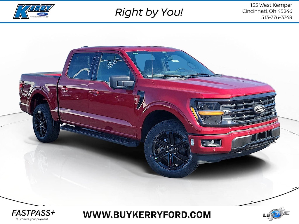 Ruby Red Metallic Tinted Clearcoat 2026 Ford F-150 XLT 4WD 10-Speed Automatic 3.5L V6 EcoBoost 4WD, 6" Black Running Boards, Black Exterior Badging, Black Grille, Body-Color Door Handles, Body-Color Front and Rear Bumpers, Dark Interior Appliques, Dual Exhaust with Black Tips, Gray Box Side Decal, Integrated Trailer Brake Controller, Tow/Haul Package, Tray Style Floor Liner Without Carpet Mats, Wheels: 20" Gloss Black Painted Aluminum, XLT Black Appearance Package Plus.
