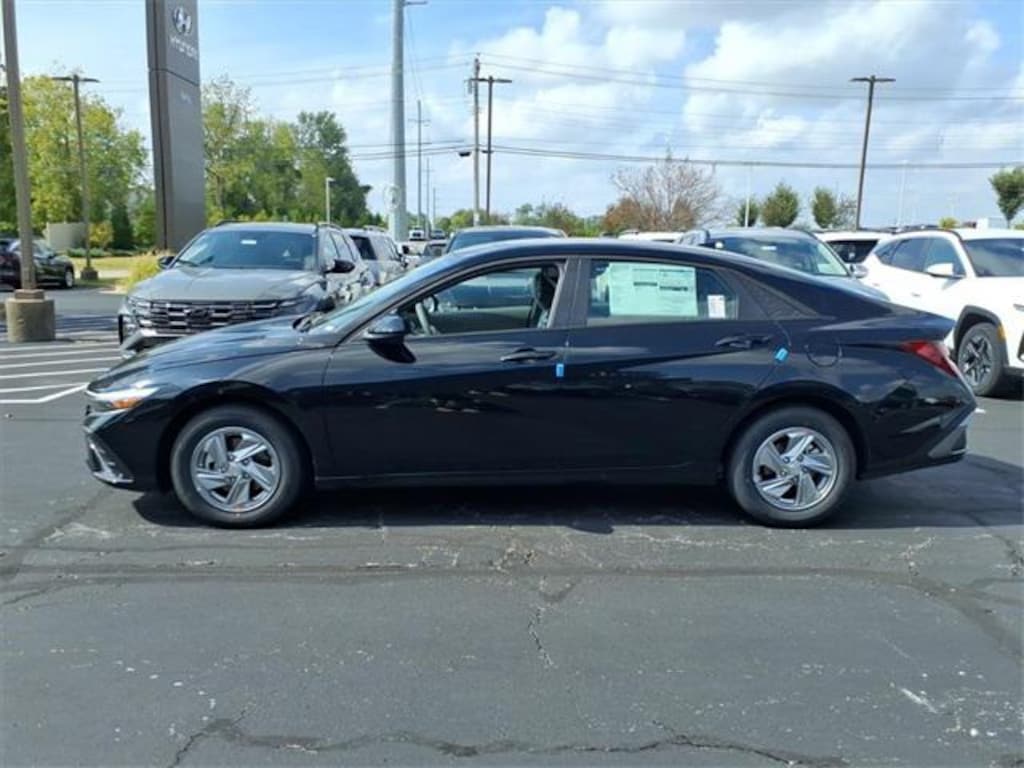 2025 Hyundai Elantra SE Abyss Black 15" x 6.0J Alloy Wheels, Apple CarPlay & Android Auto, Auto High-beam Headlights, Delay-off headlights, Power door mirrors, Power windows.