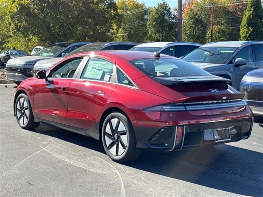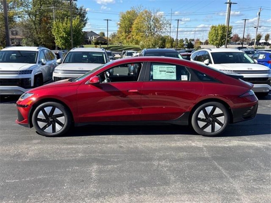 2025 Hyundai IONIQ 6 SE Ultimate Red Apple CarPlay & Android Auto, Auto High-beam Headlights, Dual front impact airbags, Front dual zone A/C, Heated door mirrors, Heated Front Bucket Seats, Heated front seats, Navigation System, Power door mirrors, Power driver seat, Remote keyless entry, Variably intermittent wipers, Wheels: 18 x 7.5J Alloy.