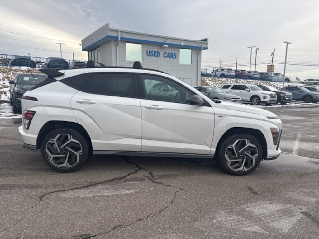 2025 Hyundai Kona N Line S Atlas White I4 ANDROID AUTO/APPLE CARPLAY, BLUETOOTH, LANE ASSIST, TOUCH TO START, TOUCH SCREEN, HEATED SEATS, BACK UP CAMERA, ALL WHEEL DRIVE, CERTIFIED, ONE OWNER. 24/29 City/Highway MPG