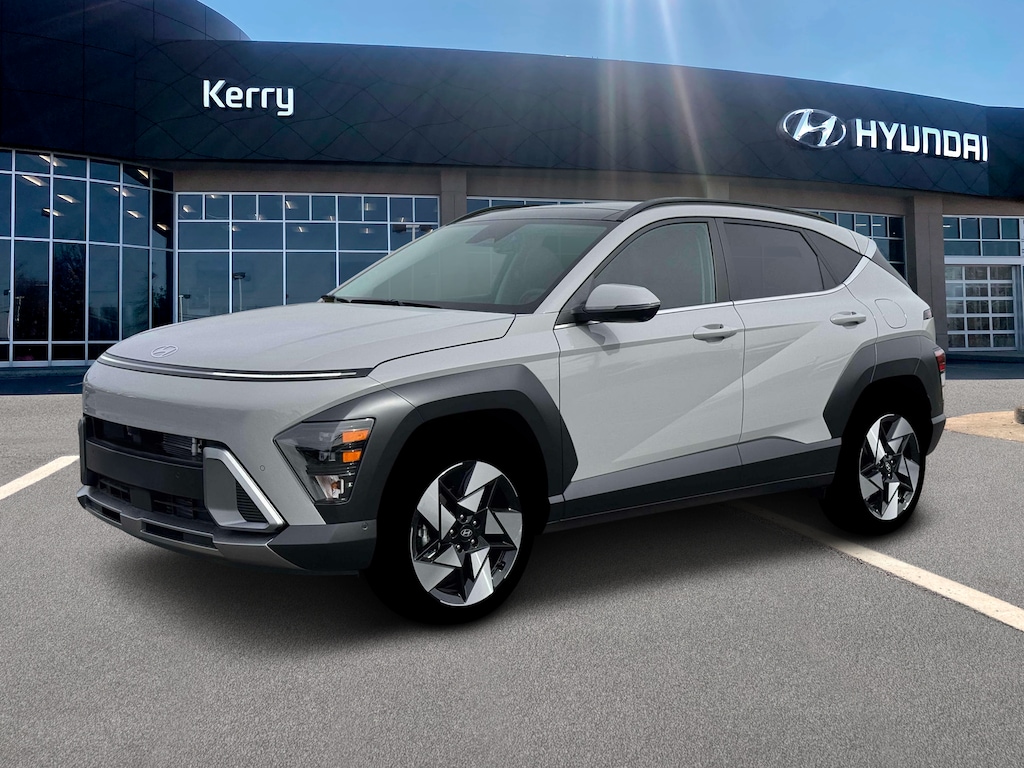 2026 Hyundai Kona Limited Cyber Gray Metallic Apple CarPlay & Android Auto, Auto High-beam Headlights, Front dual zone A/C, Heated front seats, Navigation System, Power driver seat, Power Liftgate, Power Moonroof, Remote keyless entry, Wheels: 19" x 7.5J Silver/Black Alloy.