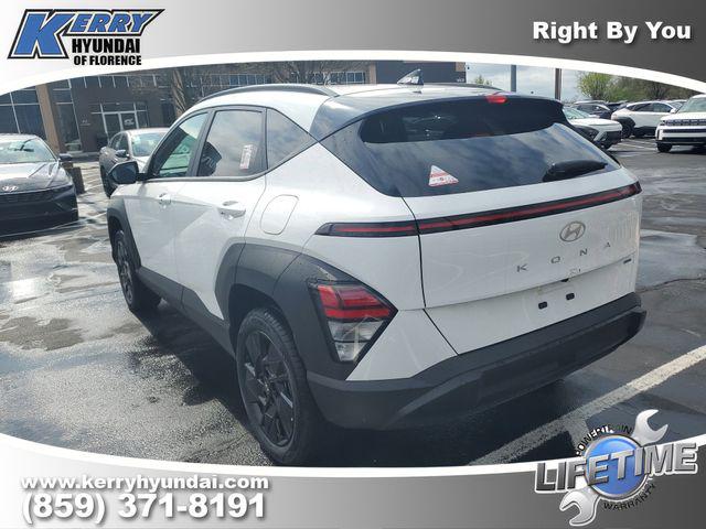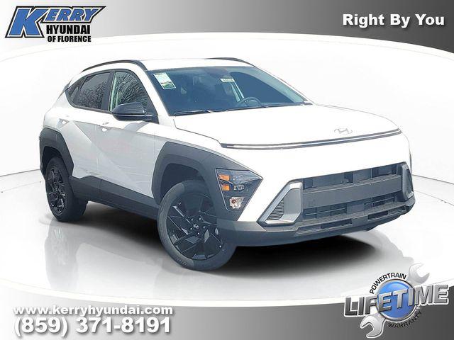 2026 Hyundai Kona SEL Sport Atlas White Apple CarPlay & Android Auto, Brake assist, Dual front impact airbags, Dual front side impact airbags, Electronic Stability Control, Exterior Parking Camera Rear, Front dual zone A/C, Heated Front Bucket Seats, Heated front seats, Low tire pressure warning, Occupant sensing airbag, Overhead airbag, Power windows, Remote keyless entry, Wheels: 18" x 7.0J Black Alloy.