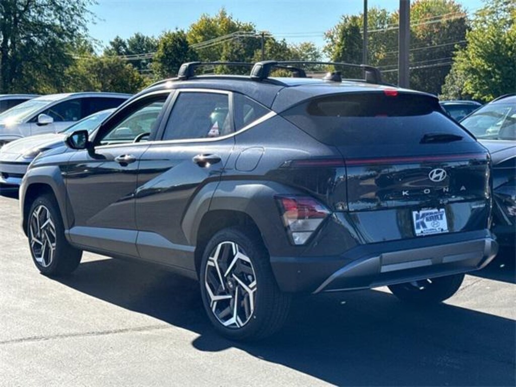 2026 Hyundai Kona SEL Premium Denim Blue Pearl Apple CarPlay & Android Auto, Auto High-beam Headlights, Brake assist, Dual front impact airbags, Dual front side impact airbags, Emergency communication system: Bluelink+, Exterior Parking Camera Rear, Front dual zone A/C, Heated door mirrors, Heated front seats, Occupant sensing airbag, Power driver seat, Remote keyless entry.