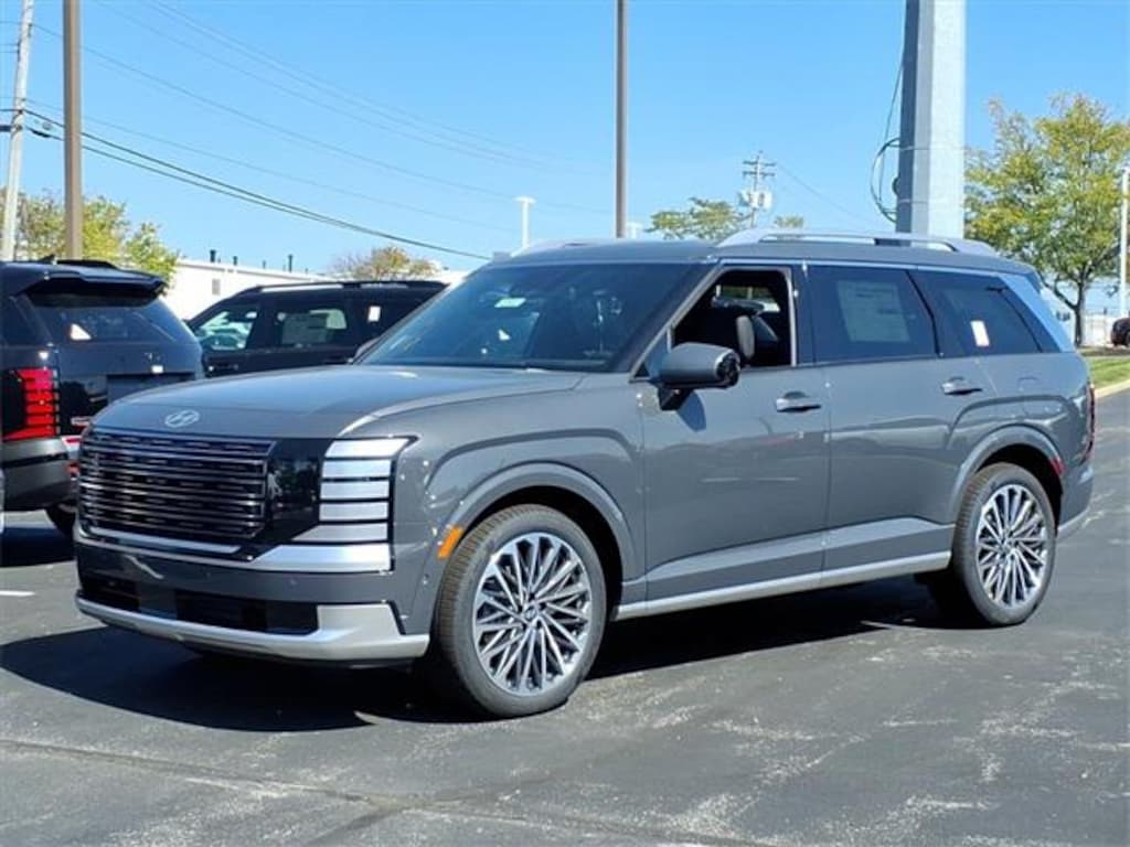 2026 Hyundai Palisade Calligraphy Ecotronic Gray Pearl Apple CarPlay & Android Auto, Auto High-beam Headlights, Brake assist, Exterior Parking Camera Rear, Front dual zone A/C, Heads-Up Display, Heated & Ventilated Front Bucket Seats, Heated front seats, Heated rear seats, Heated steering wheel, HVAC memory, Memory seat, Navigation System, Outside temperature display, Power door mirrors, Power driver seat, Power Liftgate, Power Moonroof, Power passenger seat, Premium Nappa Leather Seat Trim, Rear air conditioning, Reclining 3rd row seat, Remote keyless entry, Split folding rear seat, Ventilated front seats, Ventilated rear seats, Wheels: 21" x 8.5J Alloy.