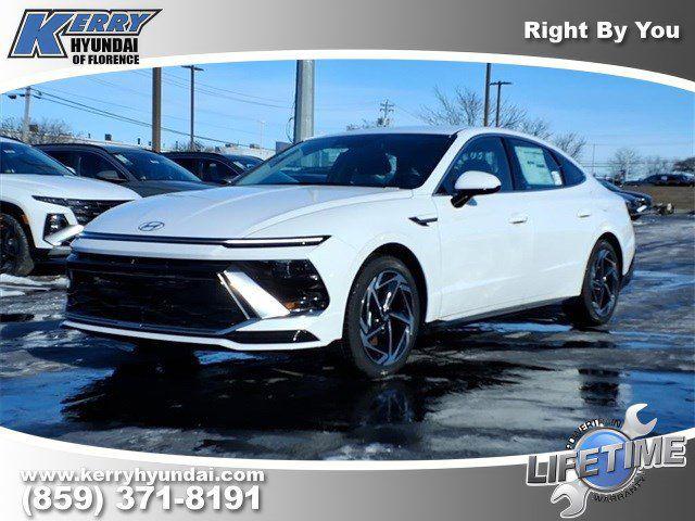 2026 Hyundai Sonata SEL Sport Serenity White Black Cloth, 18" x 7.5J Aluminum Alloy Wheels, Apple CarPlay & Android Auto, Auto High-beam Headlights, Exterior Parking Camera Rear, Heated front seats, Power driver seat, Remote keyless entry.