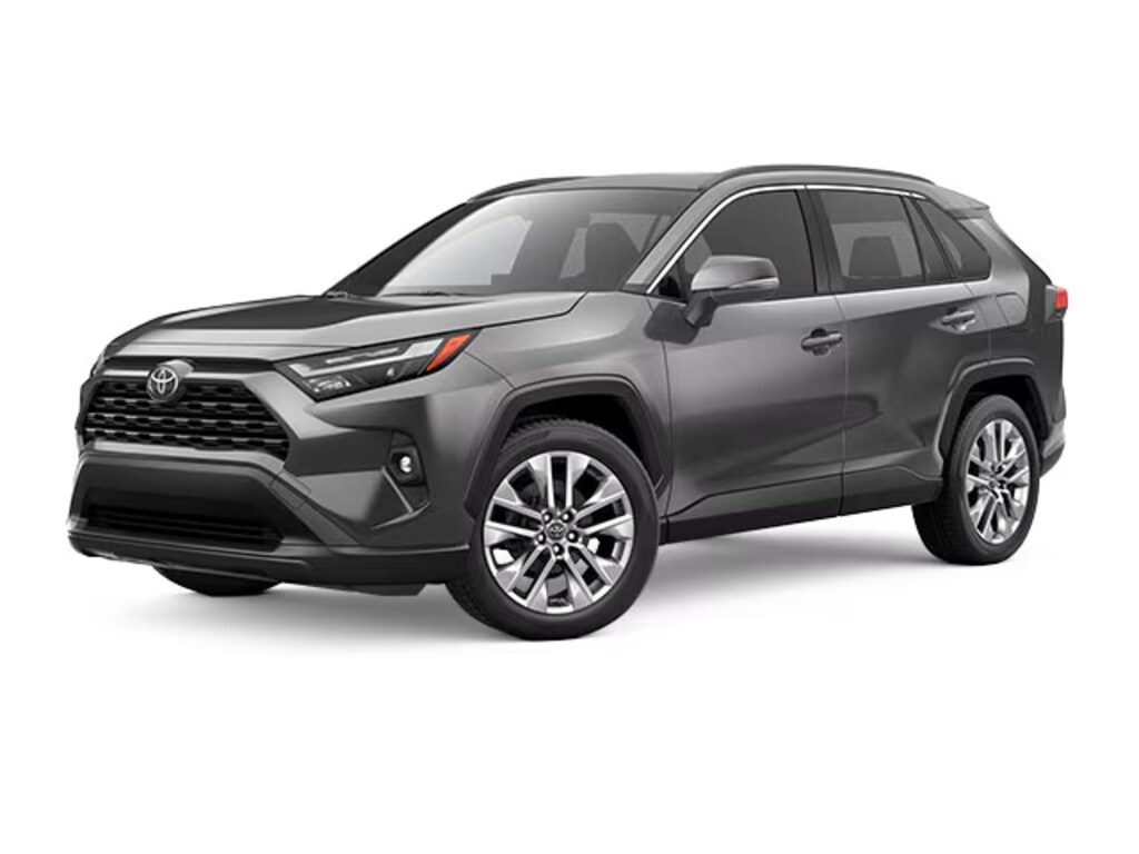 Magnetic Gray Metallic 2025 Toyota RAV4 XLE Premium AWD 8-Speed Automatic 2.5L 4-Cylinder DOHC Dual VVT-i 3 Spoke Leather Heated Steering Wheel, 3 Spoke Leather Steering Wheel, 6 Speakers, Alloy wheels, AM/FM radio: SiriusXM, Anti-Theft System, Auto High-beam Headlights, Blackout Emblem Overlays (TMS), Brake assist, Bumpers: body-color, Delay-off headlights, Door Edge Guard (TMS), Driver Seat w/2-Position Memory Function, Electronic Stability Control, Emergency communication system: Safety Connect (10-year trial), Exterior Parking Camera Rear, Frameless HomeLink Mirror (TMS), Front Seat Heating, Fully automatic headlights, Heated door mirrors, Knee airbag, Leather Shift Knob, Leather steering wheel, Low tire pressure warning, Panic alarm, Passenger door bin, Power door mirrors, Power Liftgate, Power moonroof, Radio data system, Radio: AM/FM/XM Audio System, Rear window wiper, Speed control, Spoiler, Traction control, Turn signal indicator mirrors, Variably intermittent wipers, Weather Package, Wheels: 19" 5-Spoke Silver Alloy, XLE Premium Package.