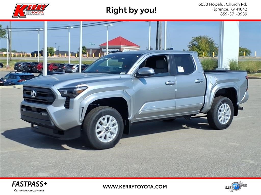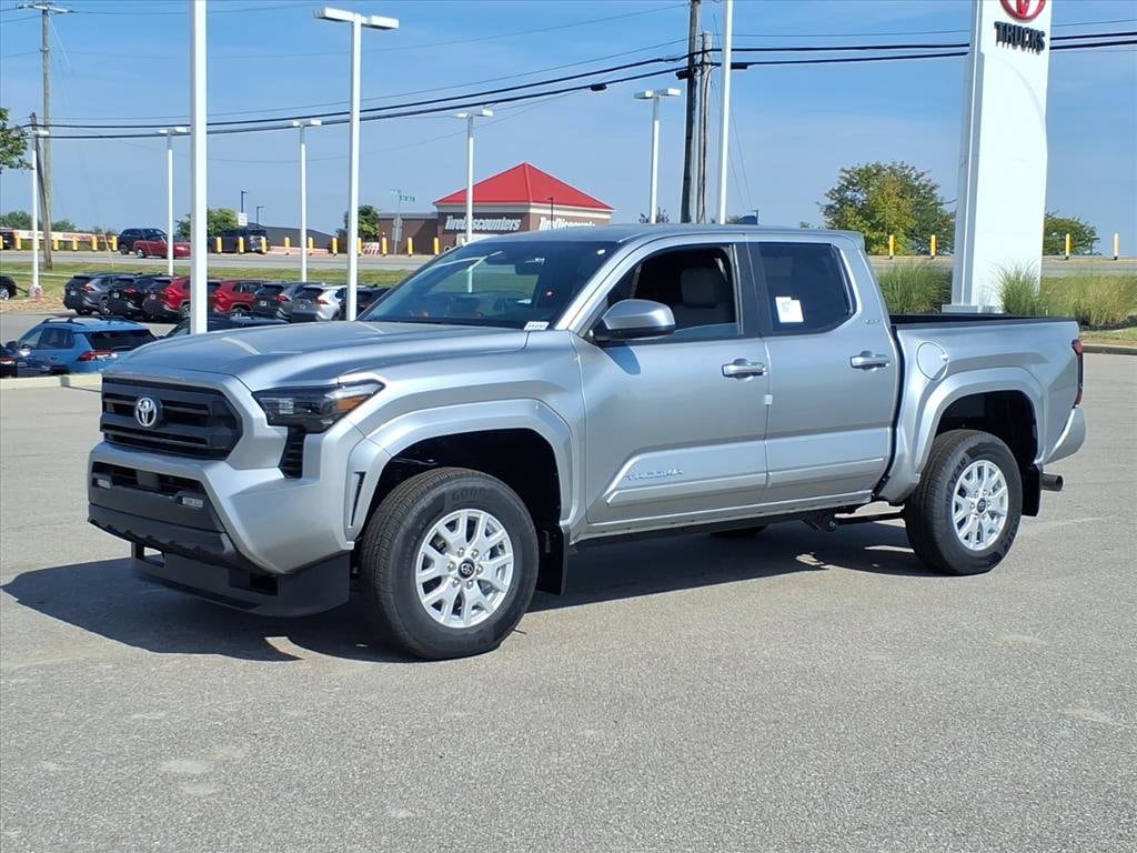 Celestial Silver Metallic 2025 Toyota Tacoma SR5 4WD 8-Speed Automatic 2.4L 4-Cylinder 6 Speakers, Alloy wheels, AM/FM radio: SiriusXM, Apple CarPlay/Android Auto, Auto High-beam Headlights, Auto-dimming Rear-View mirror, Body Side Molding (TMS), Brake assist, Bumpers: body-color, Door Edge Guard (TMS), Driver door bin, Electronic Stability Control, Emergency communication system: Safety Connect (1-year trial), Exterior Parking Camera Rear, Front fog lights, Front reading lights, Fully automatic headlights, Heated door mirrors, Illuminated entry, JBL Premium Audio, Knee airbag, Mudguards (TMS), Outside temperature display, Overhead console, Paint Protection Film (TMS), Panic alarm, Passenger door bin, Power door mirrors, Radio: 8" Toyota Audio Multimedia, Rear step bumper, SiriusXM Trial Offering: 33 Months (TMS), Speed control, Tachometer, Telescoping steering wheel, Tilt steering wheel, Traction control, Trip computer, Variably intermittent wipers, Wheels: 17" Styled Alloy.