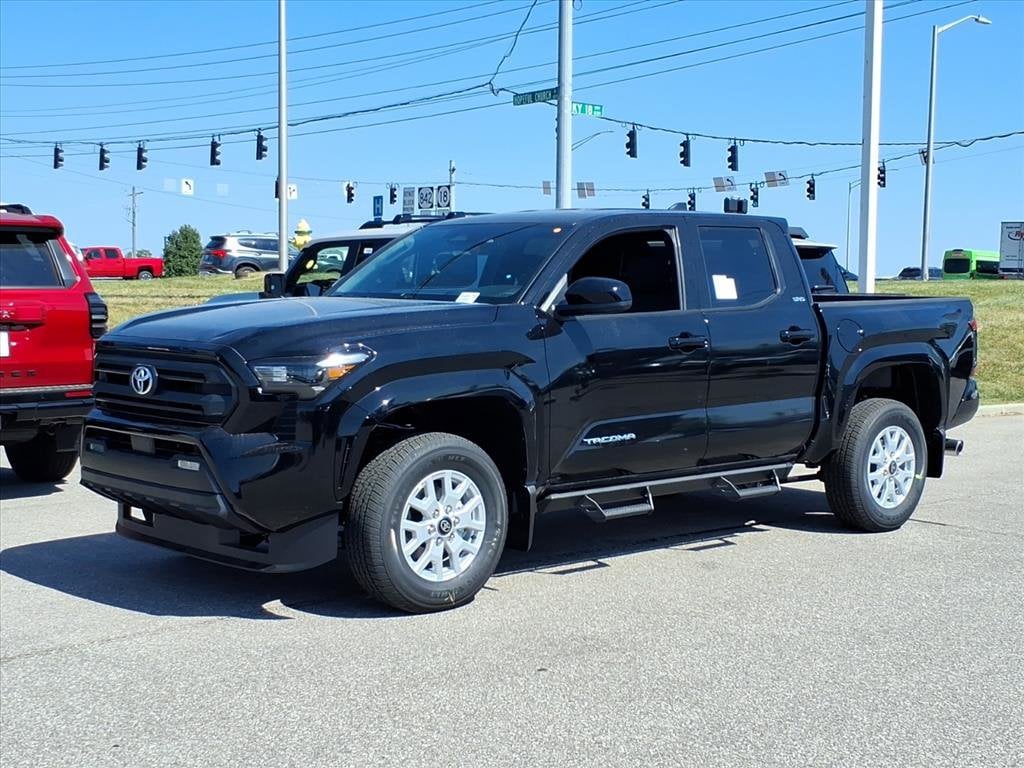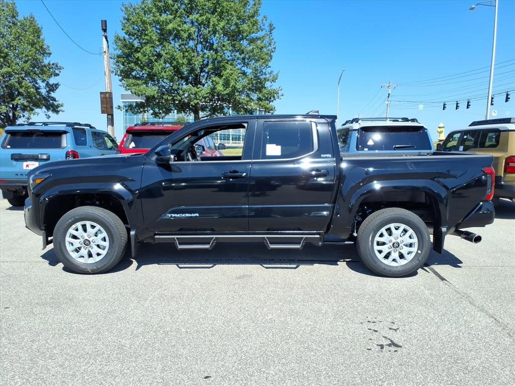 Black 2025 Toyota Tacoma SR5 4WD 8-Speed Automatic 2.4L 4-Cylinder 6 Speakers, All Weather Floor Liners (TMS), Alloy wheels, AM/FM radio: SiriusXM, Apple CarPlay/Android Auto, Auto High-beam Headlights, Auto-dimming Rear-View mirror, Bed Step (TMS), Brake assist, Bumpers: body-color, Chrome Exhaust Tip (TMS), Door Edge Guard (TMS), Driver door bin, Electronic Stability Control, Emergency communication system: Safety Connect (1-year trial), Exterior Parking Camera Rear, Front fog lights, Front reading lights, Fully automatic headlights, Heated door mirrors, Heated Seats, Illuminated entry, Knee airbag, Mudguards (TMS), Outside temperature display, Overhead console, Panic alarm, Passenger door bin, Power door mirrors, Predator Step (TMS), Radio: 8" Toyota Audio Multimedia, Rear step bumper, Remote keyless entry, Speed control, Spray-On Bed Liner (TMS), Traction control, Variably intermittent wipers, Wheel Locks (TMS), Wheels: 17" Styled Alloy.