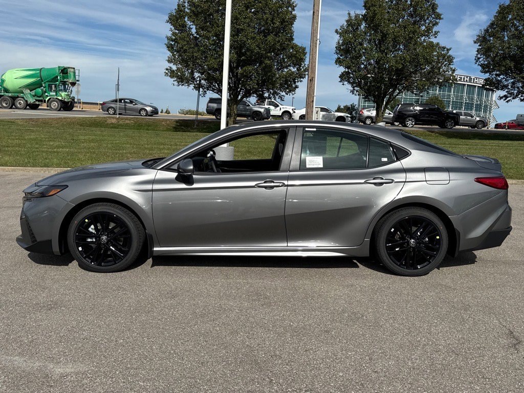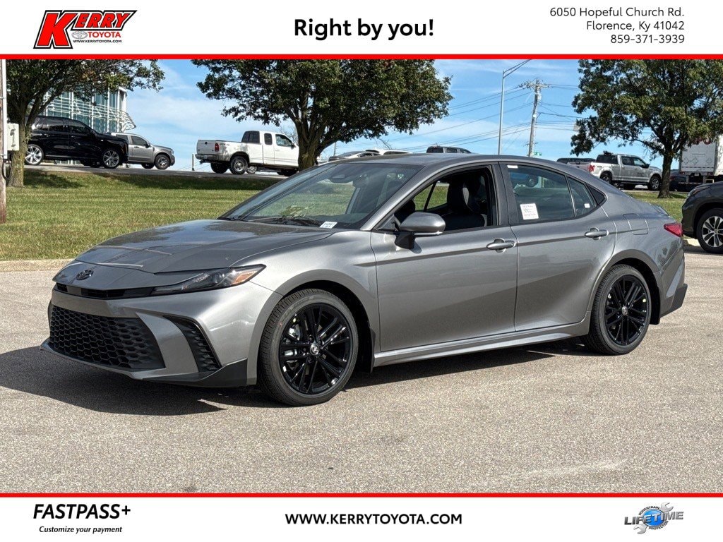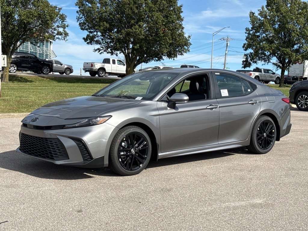 Heavy Metal 2026 Toyota Camry SE FWD eCVT 2.5L 4-Cylinder 16V DOHC 6 Speakers, All Weather Floor Protection (TMS), Alloy wheels, AM/FM radio: SiriusXM, Apple CarPlay/Android Auto, Auto High-beam Headlights, Black Badge Overlays (TMS), Brake assist, Bumpers: body-color, Delay-off headlights, Door Edge Guard (TMS), Electronic Stability Control, Emergency communication system: Safety Connect (5-year trial), Exterior Parking Camera Rear, Frameless HomeLink Mirror (TMS), Fully automatic headlights, Heated door mirrors, Heated Front Seats, Knee airbag, Leather Shift Knob, Leather steering wheel, Mudguards (TMS), Panic alarm, Passenger door bin, Power door mirrors, Radio data system, Radio: 12.3" Toyota Audio Multimedia, Radio: 8" Toyota Audio Multimedia, Rear Bumper Applique (TMS), Security system, Speed control, Spoiler, Traction control, Turn signal indicator mirrors, Variably intermittent wipers, Wheel Locks (TMS), Wheels: 18" Multi-Spoke Black-Finished Alloy.