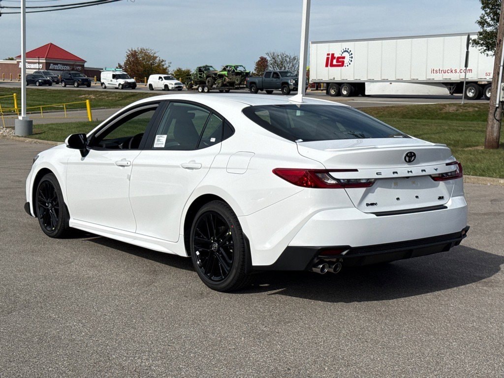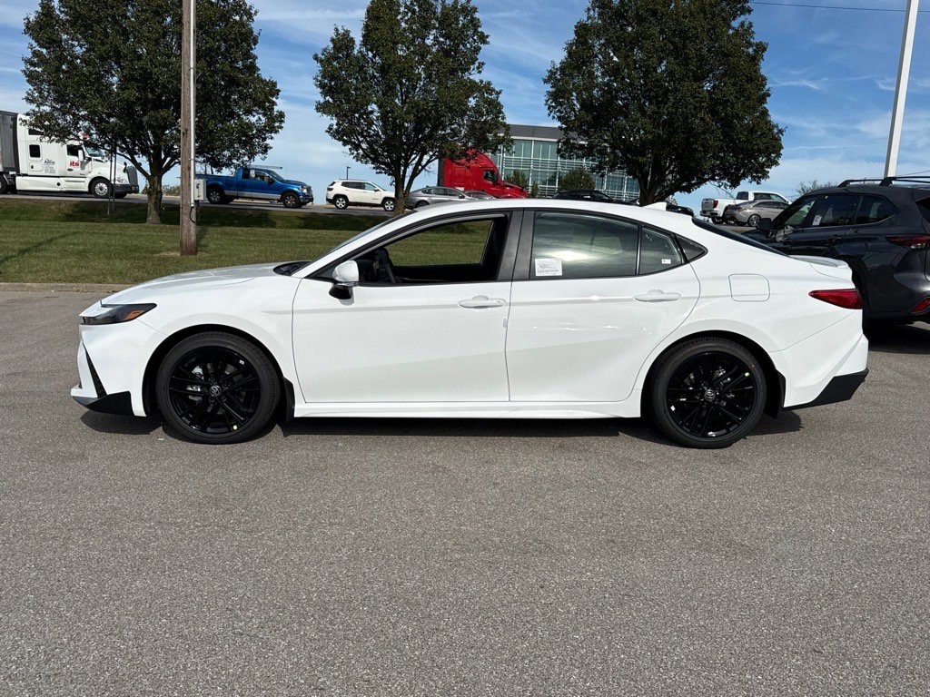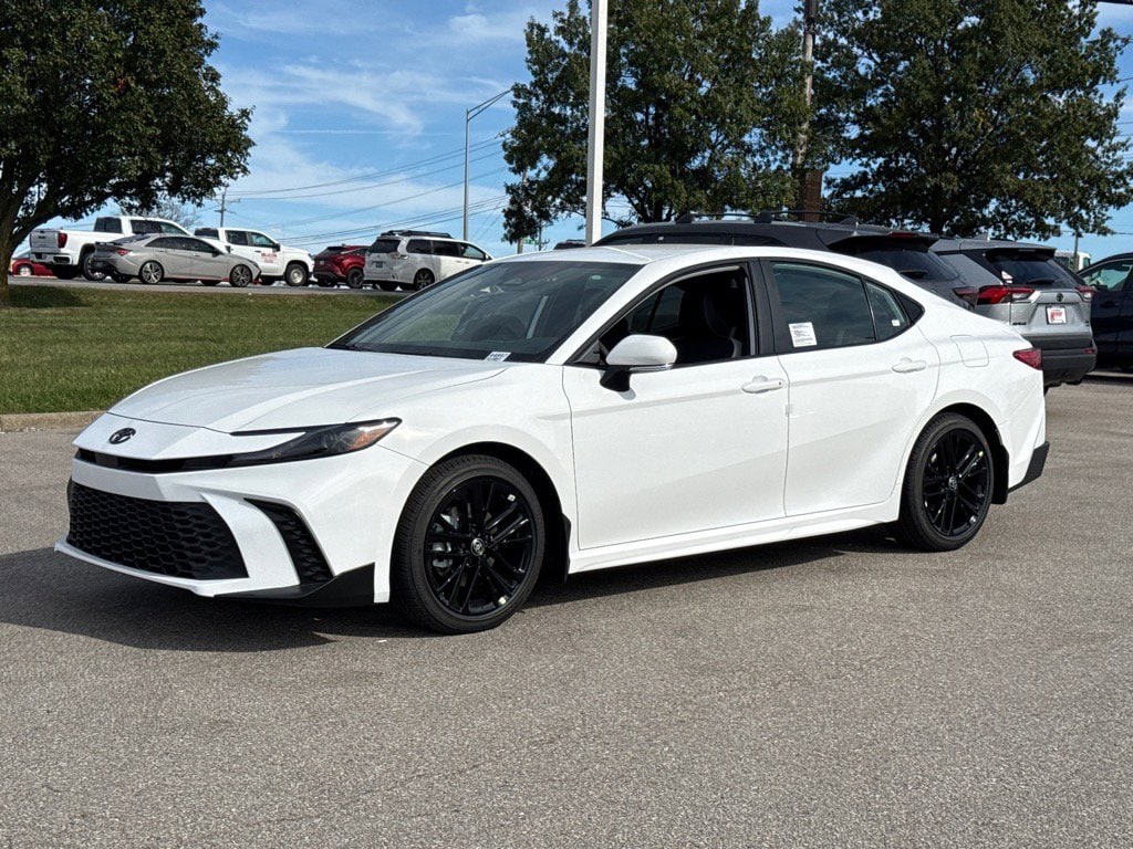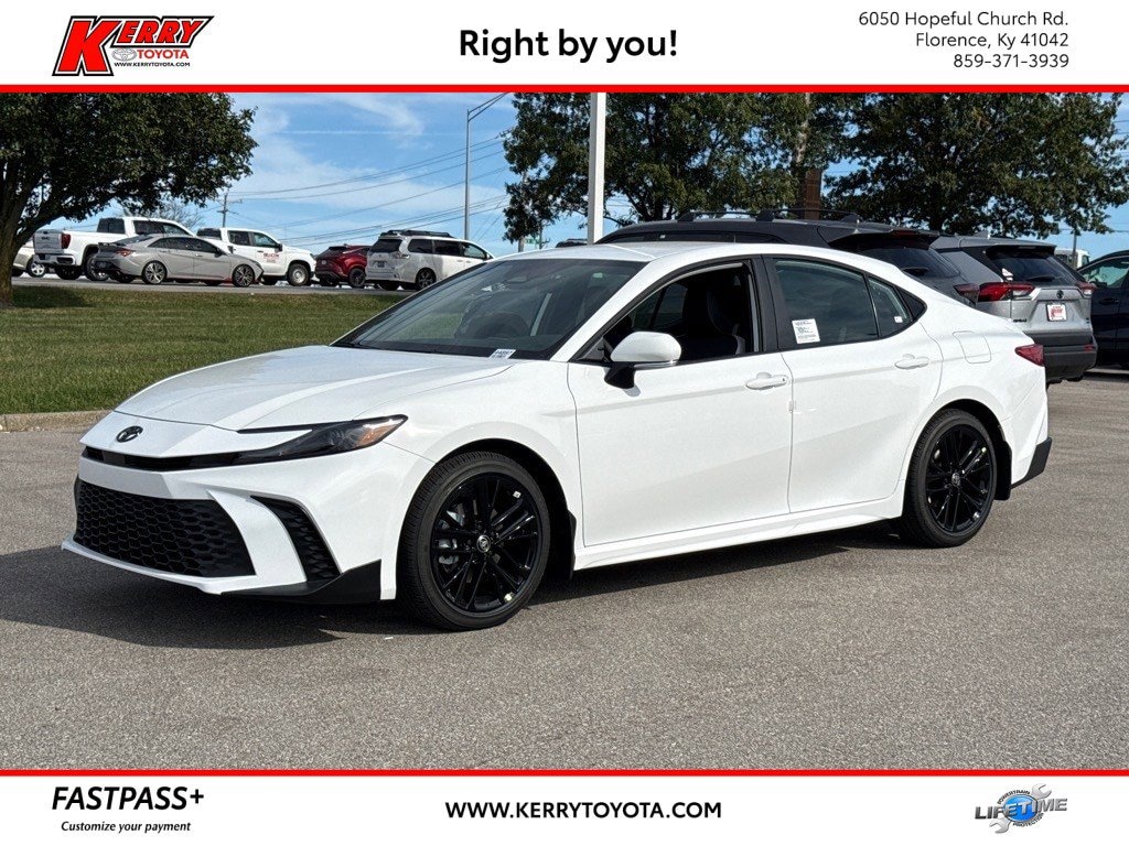 Ice Cap 2026 Toyota Camry SE FWD eCVT 2.5L 4-Cylinder 16V DOHC 6 Speakers, All Weather Floor Protection (TMS), Alloy wheels, AM/FM radio: SiriusXM, Apple CarPlay/Android Auto, Auto High-beam Headlights, Auto-Dimming Rearview Mirror w/HomeLink, Black Badge Overlays (TMS), Brake assist, Bumpers: body-color, Cold Weather Package, Convenience Package, Delay-off headlights, Door Edge Guard (TMS), Electronic Stability Control, Emergency communication system: Safety Connect (5-year trial), Exterior Parking Camera Rear, Fully automatic headlights, Heated door mirrors, Heated Front Seats, Heated Leather Steering Wheel w/Paddle Shifters, Knee airbag, Leather Shift Knob, Leather steering wheel, Mudguards (TMS), Panic alarm, Passenger door bin, Power door mirrors, Radio data system, Radio: 12.3" Toyota Audio Multimedia, Radio: 8" Toyota Audio Multimedia, Rear Bumper Applique (TMS), Security system, Smart Key System on Front Doors, Speed control, Spoiler, Traction control, Turn signal indicator mirrors, Variably intermittent wipers, Wheel Locks (TMS), Wheels: 18" Multi-Spoke Black-Finished Alloy.