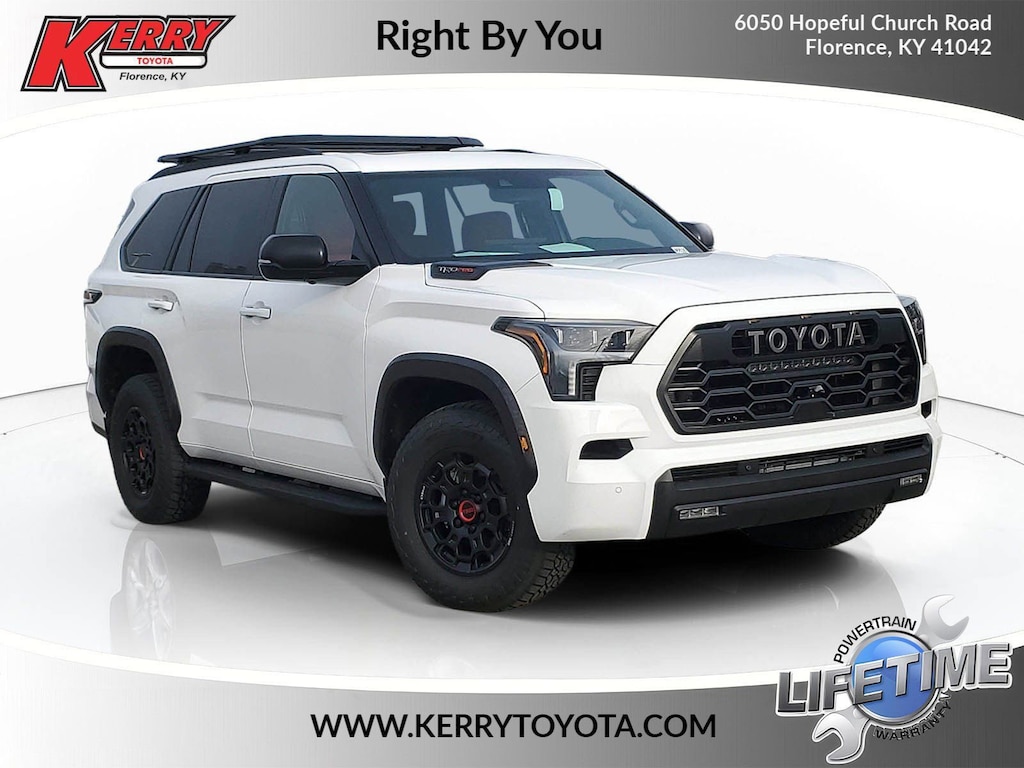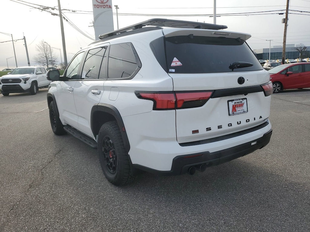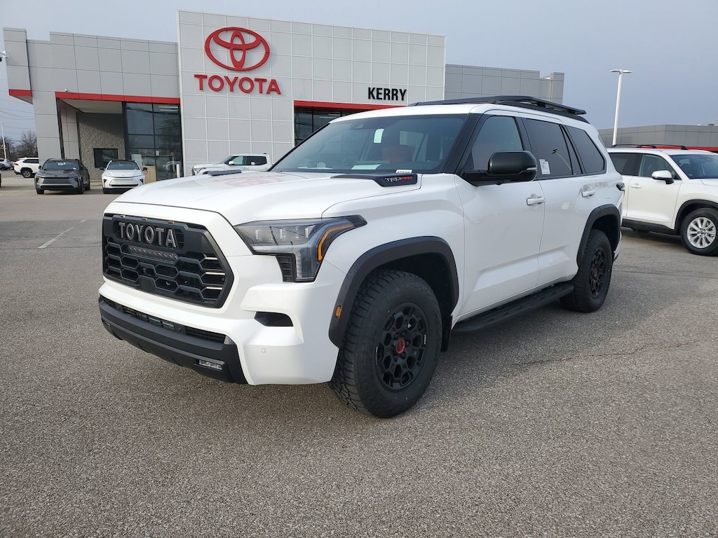 Ice Cap 2026 Toyota Sequoia TRD Pro 4WD 10-Speed Automatic V6 Hybrid 14 Speakers, Alloy wheels, AM/FM radio: SiriusXM, Apple CarPlay/Android Auto, Auto High-beam Headlights, Auto-dimming door mirrors, Auto-dimming Rear-View mirror, Brake assist, Bumpers: body-color, Compass, Dash Cam, Delay-off headlights, Door Edge Guard, Electronic Stability Control, Emergency communication system: Safety Connect (10-year trial), Exterior Parking Camera Rear, Front Center Armrest w/Storage, Front fog lights, Fully automatic headlights, Garage door transmitter: HomeLink, Headlight cleaning, Heated and Ventilated Front Seats, Heated door mirrors, Heated front seats, Heated steering wheel, Knee airbag, Leather Shift Knob, Leather steering wheel, Low tire pressure warning, Memory seat, Navigation system: Drive Connect (1 year trial) includes Cloud Navigation with real time traffic and Google POI, Panic alarm, Passenger door bin, Power door mirrors, Power Liftgate, Power moonroof, Power Tilt/Slide Panoramic Rood with Power Sunshade, Premium audio system: JBL, Radio: 14" Toyota Audio Multimedia with JBL Premium Audio, Rear window wiper, Security system, Speed control, Spoiler, Traction control, TRD Performance Package, TRD Pro Package, TRD Pro SofTex Seat Trim, Turn signal indicator mirrors, Variably intermittent wipers, Ventilated front seats, Wheel Locks, Wheels: 18" Trd Pro Forged-Aluminum BBS.