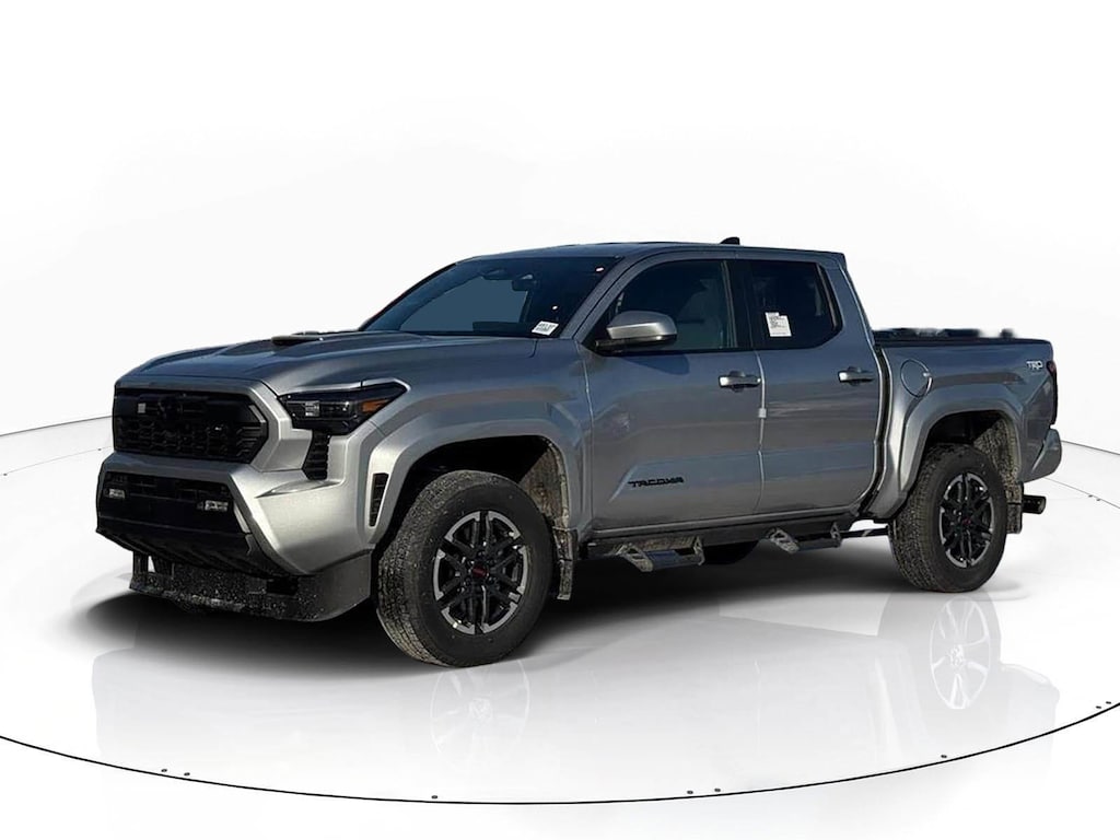 Celestial Silver Metallic 2026 Toyota Tacoma TRD Sport 4WD 8-Speed Automatic 2.4L 4-Cylinder 6 Speakers, All Weather Floor Liners, Alloy wheels, AM/FM radio: SiriusXM, Apple CarPlay/Android Auto, Auto High-beam Headlights, Auto-dimming Rear-View mirror, Bed Step, Black Chrome Exhaust Tip, Brake assist, Bumpers: body-color, Door Edge Guard, Electronic Stability Control, Emergency communication system: Safety Connect (up to 10-year trial subscription), Exterior Parking Camera Rear, Four wheel independent suspension, Front fog lights, Fully automatic headlights, Heated door mirrors, JBL Premium Audio, Knee airbag, Leather Shift Knob, Leather steering wheel, Low tire pressure warning, Mudguards, Panic alarm, Passenger door bin, Power steering, Power windows, Radio: 8" Toyota Audio Multimedia, Radio: Premium Audio with 14" Display, Rear step bumper, Remote keyless entry, Removable Predator Step, Security system, Speed control, Speed-sensing steering, Spray-on Bed Liner, Steering wheel mounted audio controls, Traction control, TRD Sport Package, Turn signal indicator mirrors, Variably intermittent wipers, Wheel Locks, Wheels: 18" TRD Sport Alloy.