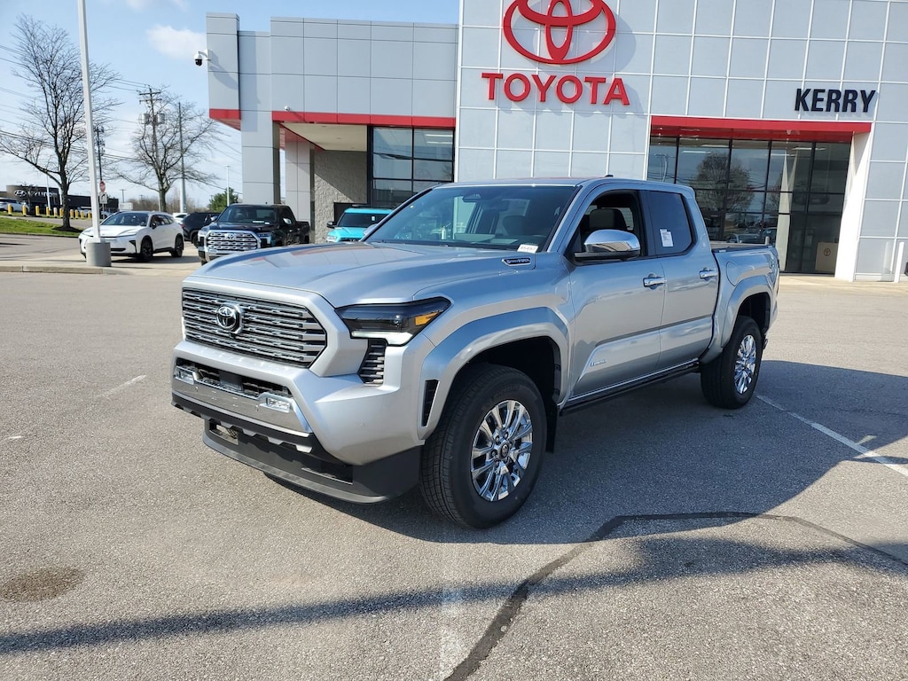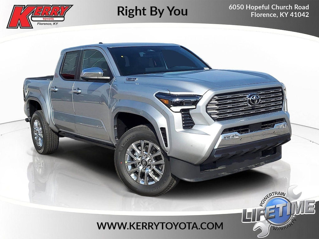 Celestial Silver Metallic 2026 Toyota Tacoma Hybrid Limited 4WD 8-Speed Automatic 2.4L 4-Cylinder 9 Speakers, All Weather Floor Liners, Alloy wheels, AM/FM radio: SiriusXM, Apple CarPlay/Android Auto, Auto High-beam Headlights, Auto-dimming Rear-View mirror, Bed Scene Lighting, Bed Step, Brake assist, Bumpers: body-color, Chrome wheels, Door Edge Guard, Electronic Stability Control, Emergency communication system: Safety Connect (up to 10-year trial subscription), Exterior Parking Camera Rear, Front fog lights, Fully automatic headlights, Garage door transmitter: HomeLink, Heads-Up Display, Heated and Ventilated Front Bucket Seats, Heated door mirrors, Heated front seats, Heated steering wheel, Illuminated Front Emblem Bright Chrome, IP Side Accessory - LED Lantern, JBL Premium Audio, Knee airbag, Leather Shift Knob, Leather steering wheel, Limited Package, Low tire pressure warning, Navigation system: Drive Connect Cloud Navigation (1-year trial subscription), Panic alarm, Passenger door bin, Power door mirrors, Power driver seat, Power moonroof, Radio: 14" Toyota Audio Multimedia, Rear step bumper, Security system, Spare Tire Lock, Speed control, Spray-on Bed Liner, Tachometer, Telescoping steering wheel, Tilt steering wheel, Traction control, Turn signal indicator mirrors, Variably intermittent wipers, Ventilated front seats, Wheel Locks, Wheels: 18" Chrome-Finished Alloy.