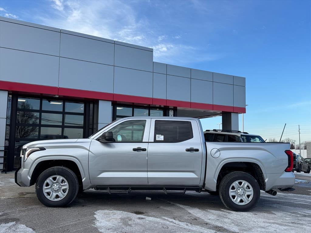 Celestial Silver Metallic 2026 Toyota Tundra SR 4WD 10-Speed Automatic 3.4L V6 18" Styled Steel Wheels, 4-Way Manual Front Seats, 9 Speakers, All Weather Floor Liners (TMS), AM/FM radio: SiriusXM, Apple CarPlay/Android Auto, Auto High-beam Headlights, Bed Step (TMS), Brake assist, Bumpers: body-color, Delay-off headlights, Electronic Stability Control, Emergency communication system: Safety Connect (up to 10-year trial subscription), Exhaust Tip - Black Chrome (TMS), Exterior Parking Camera Rear, Fully automatic headlights, Heated door mirrors, Knee airbag, Panic alarm, Passenger door bin, Power door mirrors, Predator Drop Step (TMS), Radio data system, Radio: Audio Multimedia System, Rear step bumper, Safety Connect, Security system, Speed control, SR Package, Stainless Steel Door Edge Guards (TMS), Traction control, Variably intermittent wipers.