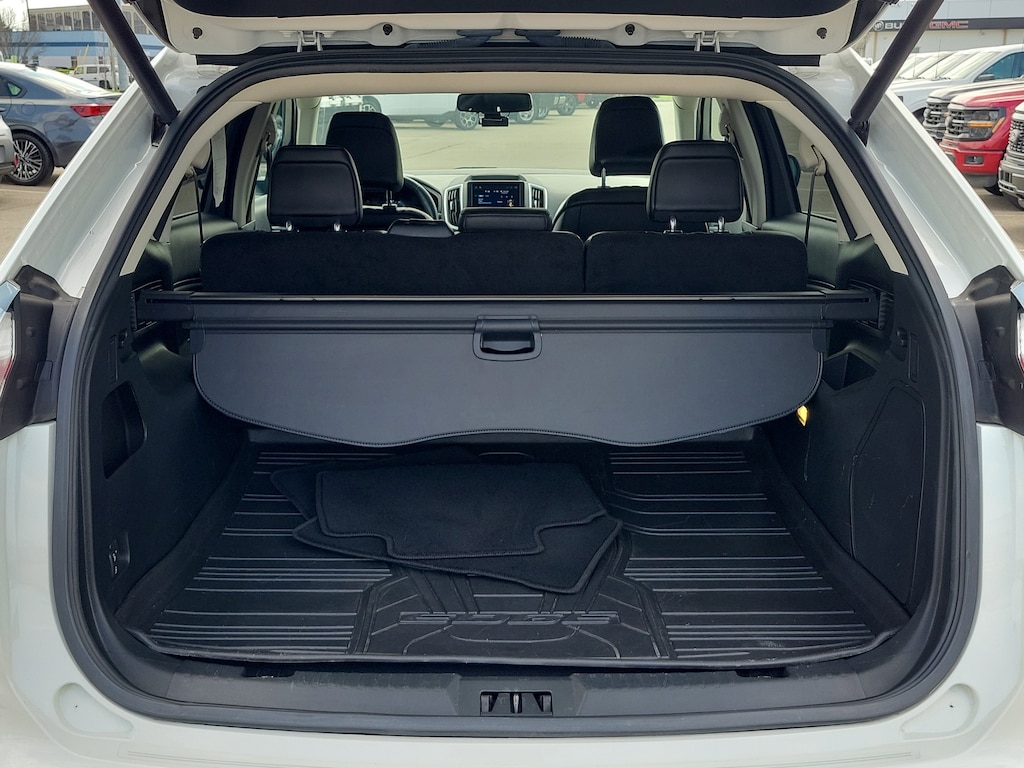 CARFAX One-Owner. Star White Metallic Tri-Coat 2023 Ford Edge Titanium AWD 8-Speed Automatic EcoBoost 2.0L I4 GTDi DOHC Turbocharged VCT Edge Titanium, 4D Sport Utility, EcoBoost 2.0L I4 GTDi DOHC Turbocharged VCT, 8-Speed Automatic, AWD, Star White Metallic Tri-Coat, Ebony w/ActiveX Trimmed w/FreeForm Sport Bucket Seats, 12 Speakers, Brake assist, Cargo Accessory Package, Cargo Mat, Electronic Stability Control, Equipment Group 300A, FordPass Connect, Four wheel independent suspension, Heated door mirrors, Memory seat, Panic alarm, Panoramic Vista Roof, Power Liftgate, Radio: B&O Sound System by Bang & Olufsen, Rear Bumper Protector, Remote keyless entry, Retractable Cargo Area Cover, SiriusXM w/360L, Speed control, Steering wheel mounted audio controls, SYNC 4A w/Enhanced Voice Recognition, Traction control, Wheels: 20" Bright-Machined Aluminum.