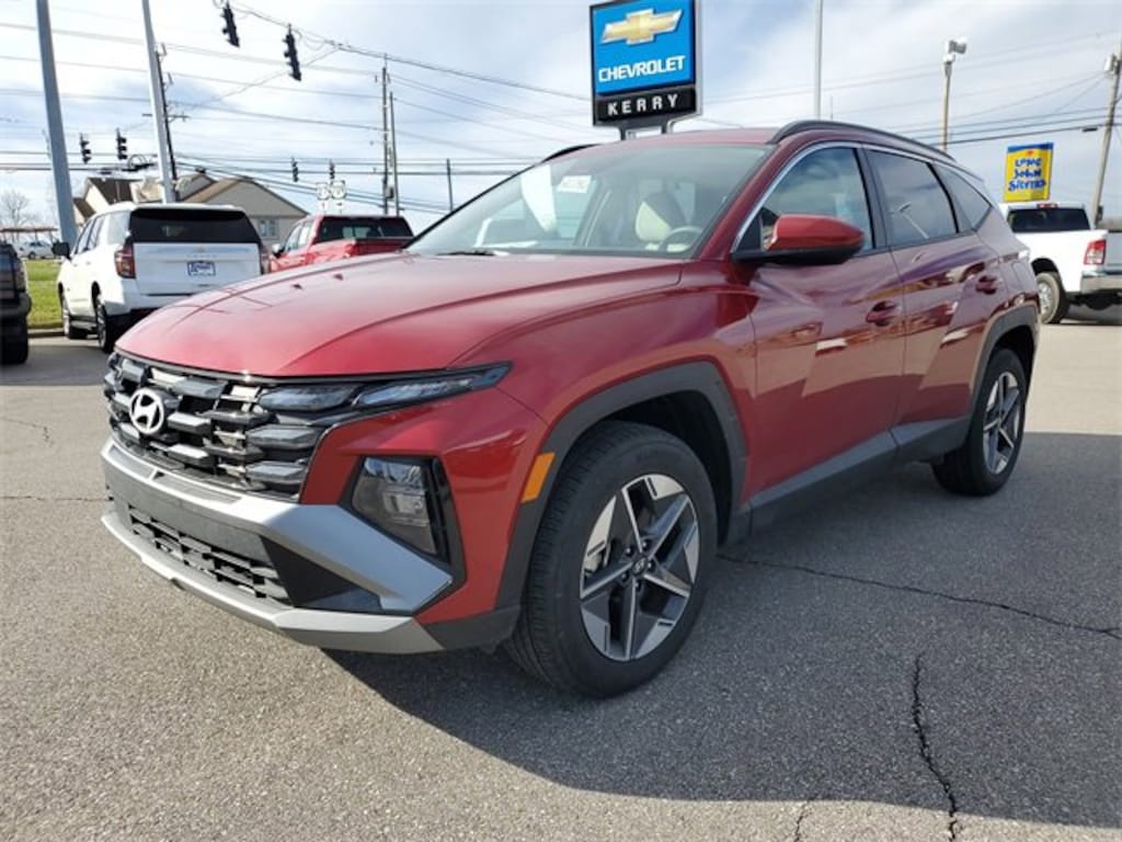 Home of the Lifetime Powertrain Protection! Proudly Serving: Cincinnati, Dayton, Lexington, Louisville, Hamilton, Mason, Sharonville, Beavercreek, Springdale, West Chester, Monroe, Fairfield, Kenwood, Newport, Covington, Fort Mitchell, Fort Thomas, Fort Wright, Independence, Florence, Union, Alexandria, Butler, Falmouth, Dry Ridge, and all of greater Cincinnati, Ohio, Indiana, and Northern Kentucky.2025 Hyundai Tucson SEL Ultimate Red 2.5L I4 DGI DOHC 16V LEV3-SULEV30 187hp ANDROID AUTO/APPLE CARPLAY, BLUETOOTH, TOUCH TO START, TOUCH SCREEN, HEATED SEATS, BACK UP CAMERA, ALL WHEEL DRIVE, CLEAN VEHICLE HISTORY...NO ACCIDENTS, ONE OWNER, AWD. 24/30 City/Highway MPGOnline pricing reflects all advertised specials, coupons, rebates, and discounts. All new vehicles include additional 3M New Car Protection Package ($495) and Pulse safety braking technology ($499) not reflected in the online pricing, plus any dealer installed accessories. Purchase and lease incentives relevant to pricing and/or dealer discount may vary. See dealer for details. In the event a vehicle is listed at an incorrect price or incorrect features/options due to typographical, photographic, or technical error or error in pricing information received from our suppliers, the dealership shall have the right to refuse or cancel any orders placed for vehicle listed in error. Price includes the following incentives but does not include Tax, Title, License or Documentation Fee.: $3000 - Hyundai HMF Dealer Choice : $3000 discount and 5.39% APR for 24 months. $44.05 per $1000 financed. Available to well qualified buyers who finance through Hyundai Motor Finance. H704. Exp. 02/02/2026