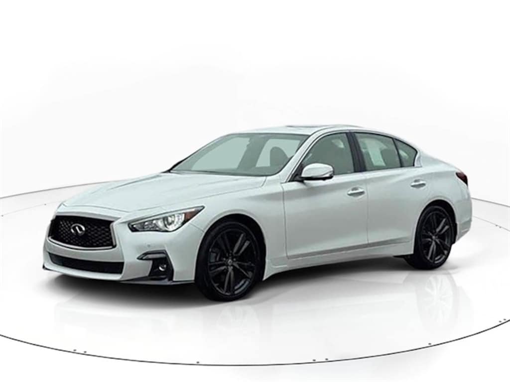 Certified. Majestic White 2021 INFINITI Q50 3.0t Signature Edition AWD 7-Speed Automatic with Overdrive 3.0L V6 *CERTIFED*, *LIFETIME POWERTRAIN WARRANTY*, Apple CarPlay/Android Auto, Blind Spot Warning, Electronic Stability Control, Four wheel independent suspension, Heated Front Sport Seats, Leather Seating Surfaces, Navigation system: INFINITI InTouch Navigation, Power Moonroof, Remote keyless entry, Steering wheel mounted audio controls, Traction control.