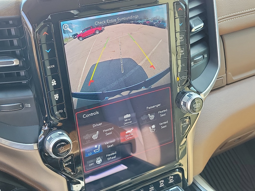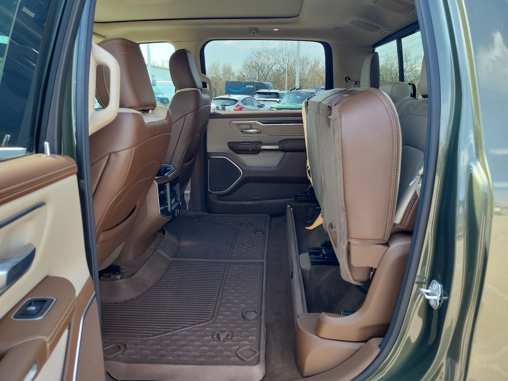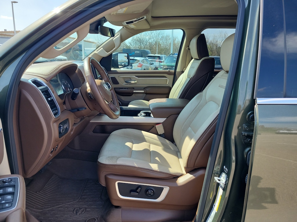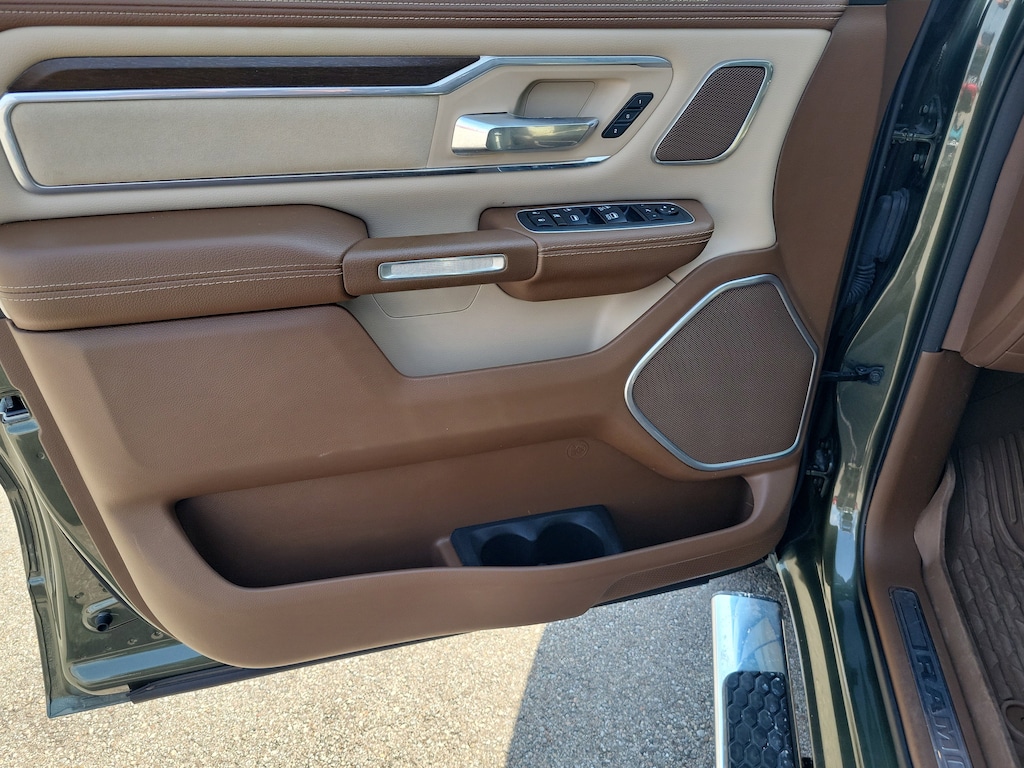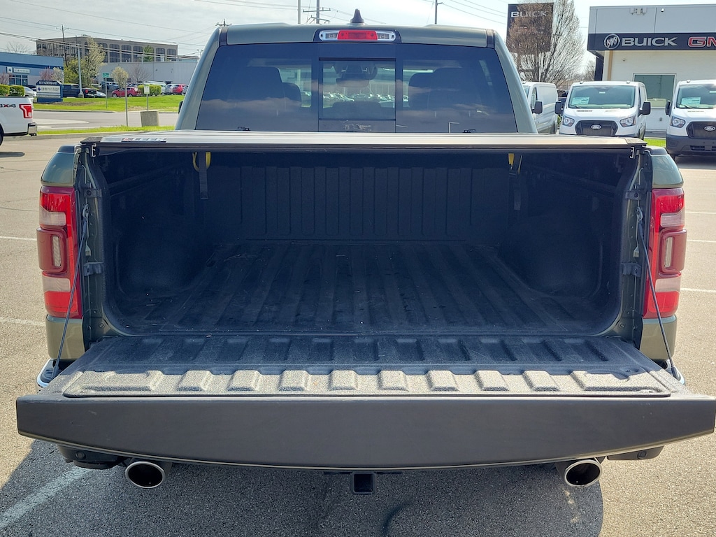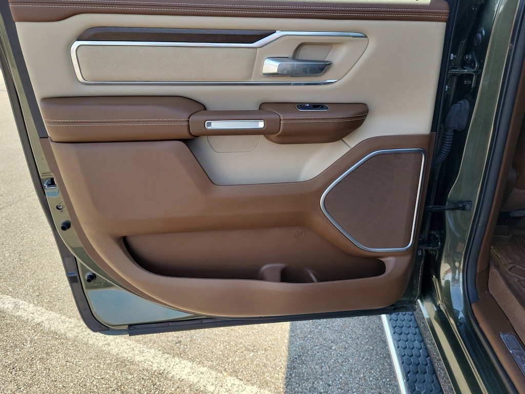 Olive Green Pearlcoat 2021 Ram 1500 Laramie 4WD 8-Speed Automatic HEMI 5.7L V8 Multi Displacement VVT 1500 Laramie, 4D Crew Cab, HEMI 5.7L V8 Multi Displacement VVT, 8-Speed Automatic, 4WD, Olive Green Pearlcoat, Lt Frost Beige/Mountain Leather, #1 Seat Foam Cushion, 10 Speakers, 3 Rear Seat Head Restraints, 4 Way Front Headrests, Air Conditioning, Auto High Beam Headlamp Control, Automatic temperature control, Bed Utility Group, Brake assist, Bright Day Light Opening Moldings, Bucket Seats, Center Console Parts Module, Chrome Appearance Group, Chrome Tow Hooks, Delay-off headlights, Dome Dual LED Reading Lamp, Driver Seat Memory, Dual-Pane Panoramic Sunroof, Electronic Stability Control, Foam Bottle Insert (Door Trim Panel), Front dual zone A/C, Front fog lights, Front Seat Back Map Pockets, Full Length Upgraded Floor Console, Fully automatic headlights, GPS Navigation, harman/kardon 19 Speaker Premium Sound, Heated Front Seats, Heated Second Row Seats, Heated Steering Wheel, Laramie Level B Equipment Group, Leather Trimmed Bucket Seats, LED Dome/Reading Lamp, MOPAR 4 Adjustable Cargo Tie-Down Hooks, MOPAR Deployable Bed Step, MOPAR Spray In Bedliner, ParkSense Front/Rear Park Assist w/Stop, ParkView Rear Back-Up Camera, Pick-Up Box Lighting, Power 4-Way Driver Lumbar Adjust, Power 4-Way Passenger Lumbar Adjust, Power 8-Way Driver & Passenger Seats, Quick Order Package 27H Laramie, Radio: Uconnect 4C Nav w/8.4" Display, Rain Sensitive Windshield Wipers, Rear 60/40 Folding Split Recline Seat, Rear Underseat Compartment Storage, Rear window defroster, Remote Tailgate Release, Tailgate Ajar Warning Lamp, Traction control, Trailer Brake Control, Ventilated Front Seats, Wheel to Wheel Side Steps, Wheels: 20" x 9" Premium Paint/Polished.