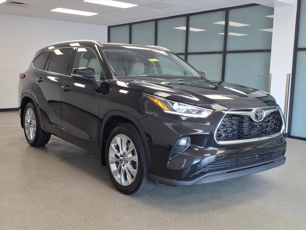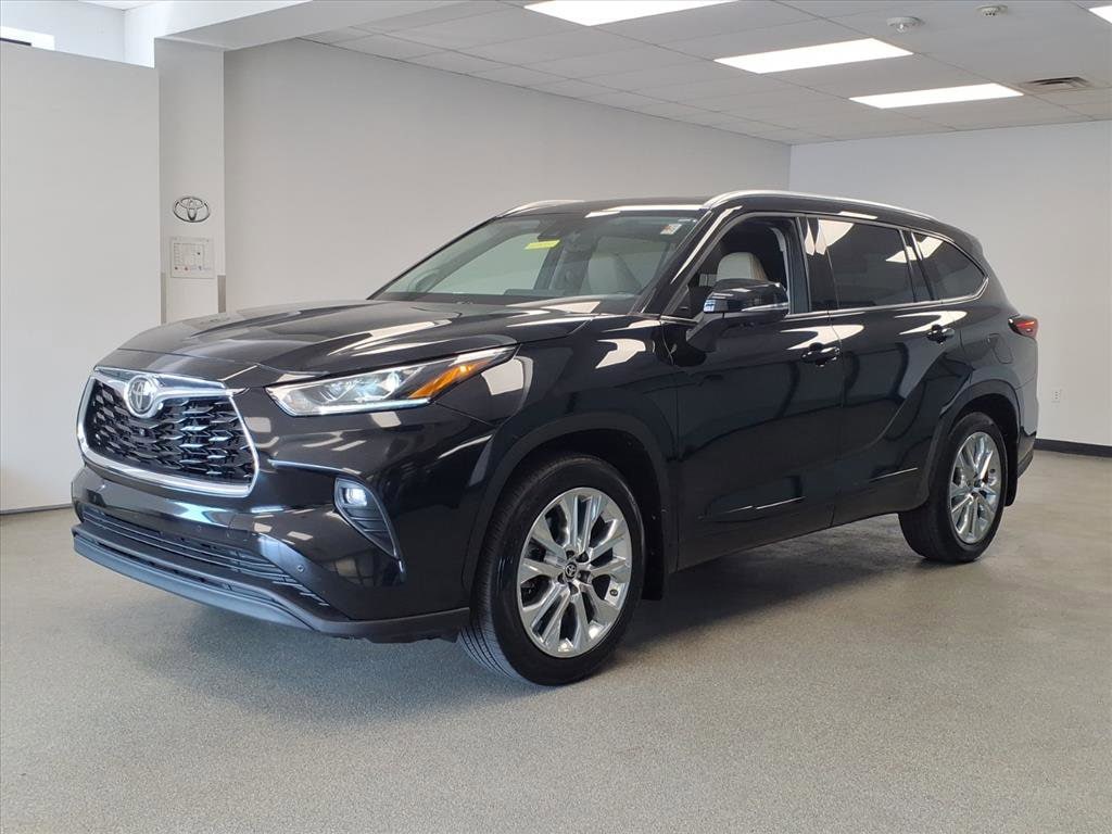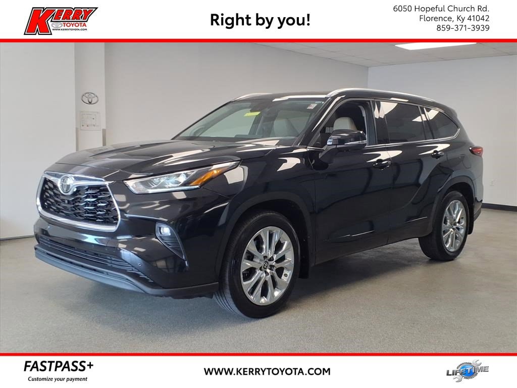 Proudly serving Cincinnati, Florence, Alexandria, Dayton, Hamilton, Dry Ridge, Lexington, Louisville, Nicholasville. Certified. Midnight Black Metallic 2024 Toyota Highlander Limited AWD 8-Speed Automatic 2.4L I4 PDI Turbocharged DOHC 16V LEV3-SULEV30 265hp 11 Speakers, ABS brakes, Active Cruise Control, Alloy wheels, AM/FM radio: SiriusXM, Apple CarPlay/Android Auto, Auto High-beam Headlights, Auto-dimming Rear-View mirror, Black Emblem Overlays (TMS), Brake assist, Bumpers: body-color, Chrome wheels, Dashcam (TMS), Delay-off headlights, Electronic Stability Control, Emergency communication system: Safety Connect (up to 10-year trial subscription), Exterior Parking Camera Rear, Front dual zone A/C, Front fog lights, Fully automatic headlights, Heated door mirrors, Heated front seats, Heated/Ventilated Front Bucket Seats, Illuminated Door Sills (TMS), Illuminated entry, Knee airbag, Leather Seat Trim, Low tire pressure warning, Navigation System, Navigation system: Drive Connect Cloud Navigation (1-year trial subscription), Paint Protection Film (TMS), Panic alarm, Panoramic View Monitor, Passenger door bin, Power door mirrors, Power Liftgate, Power moonroof, Protection Package #3 (TMS) (DISC), Radio: 12.3" Toyota Audio Multimedia w/JBL Premium, Rear window wiper, Remote keyless entry, Security system, Speed control, Spoiler, Tow Hitch (TMS), Traction control, Turn signal indicator mirrors, Variably intermittent wipers, Wheels: 20" Chrome Finished Alloy.