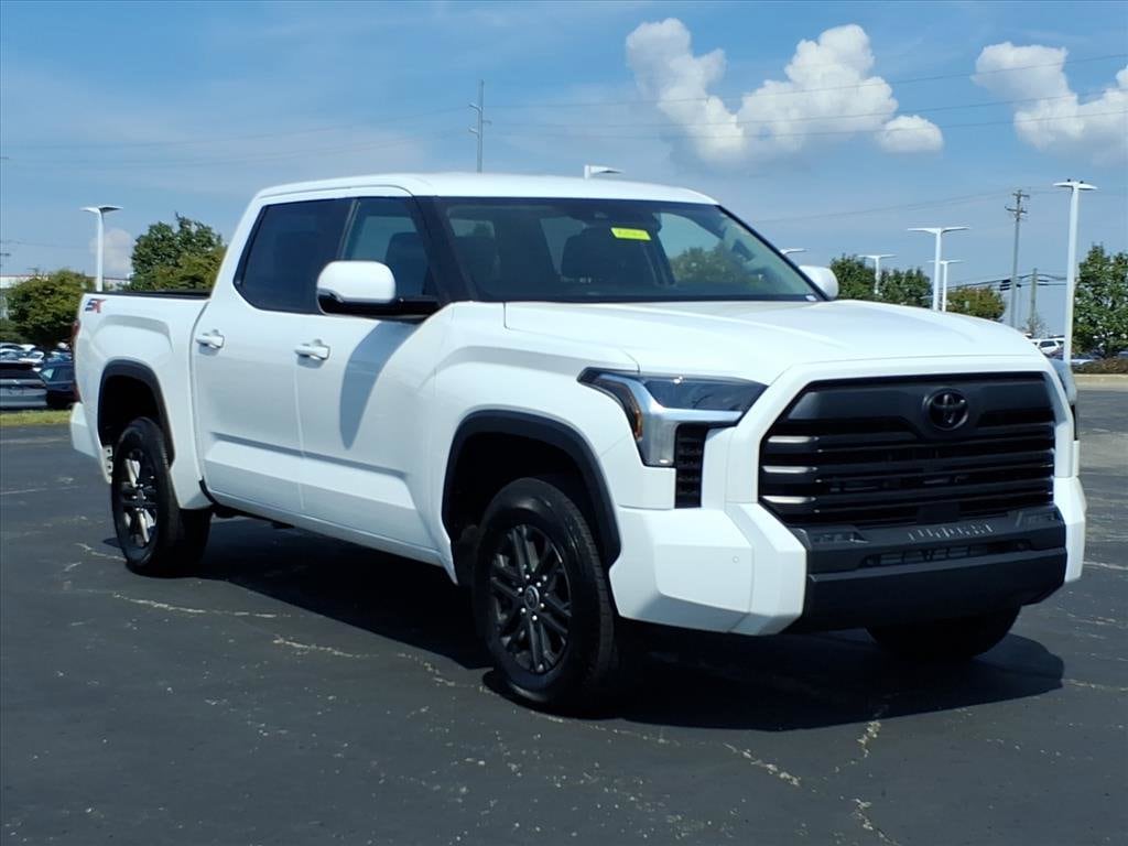 Proudly serving Cincinnati, Florence, Alexandria, Dayton, Hamilton, Dry Ridge, Lexington, Louisville, Nicholasville. Ice Cap 2024 Toyota Tundra SR5 4WD 10-Speed Automatic 3.4L V6 18" Alloy Wheels, 32 Gallon Fuel Tank, 4-Way Adjustable Front Bucket Seats, 9 Speakers, Alloy wheels, AM/FM radio: SiriusXM, Apple CarPlay/Android Auto, Auto High-beam Headlights, Black Emblem Overlay (TMS), Black Tailgate Insert (TMS), Blind Spot Monitor, Blind Spot Monitor w/Lane Change Assist, Brake assist, Bumpers: body-color, Dash Cam (TMS), Delay-off headlights, Electronic Stability Control, Emergency communication system: Safety Connect (10-year trial), Exterior Parking Camera Rear, Fabric Seat Trim, Front fog lights, Fully automatic headlights, Heated door mirrors, Knee airbag, Non-Skid Spray-On Bed Liner (TMS), Panic alarm, Parking Support Alert/Brake, Passenger door bin, Power door mirrors, Radio data system, Radio: Audio Multimedia System, Rear step bumper, Safety Connect, Security system, Speed control, SR5 Convenience Package, SR5 Painted Mirror, SX Package, Traction control, Variably intermittent wipers, Wheels: 18" Dark Gray Metallic Alloy.