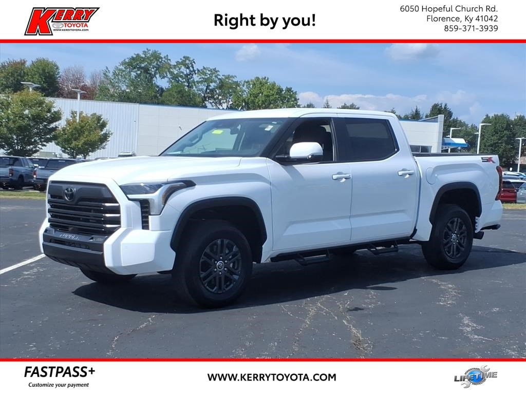 Proudly serving Cincinnati, Florence, Alexandria, Dayton, Hamilton, Dry Ridge, Lexington, Louisville, Nicholasville. Ice Cap 2024 Toyota Tundra SR5 4WD 10-Speed Automatic 3.4L V6 18" Alloy Wheels, 32 Gallon Fuel Tank, 4-Way Adjustable Front Bucket Seats, 9 Speakers, Alloy wheels, AM/FM radio: SiriusXM, Apple CarPlay/Android Auto, Auto High-beam Headlights, Bed Step (TMS), Black Emblem Overlay (TMS), Blind Spot Monitor, Blind Spot Monitor w/Lane Change Assist, Brake assist, Bumpers: body-color, Dash Cam (TMS), Delay-off headlights, Electronic Stability Control, Emergency communication system: Safety Connect (10-year trial), Exhaust Tip - Black Chrome (TMS), Exterior Parking Camera Rear, Fabric Seat Trim, Front fog lights, Fully automatic headlights, Heated door mirrors, Knee airbag, Non-Skid Spray-On Bed Liner (TMS), Panic alarm, Parking Support Alert/Brake, Passenger door bin, Power door mirrors, Predator Drop Step (TMS), Radio data system, Radio: Audio Multimedia System, Rear step bumper, Safety Connect, Security system, Speed control, SR5 Convenience Package, SR5 Painted Mirror, SX Package, Traction control, Variably intermittent wipers, Wheels: 18" Dark Gray Metallic Alloy.
