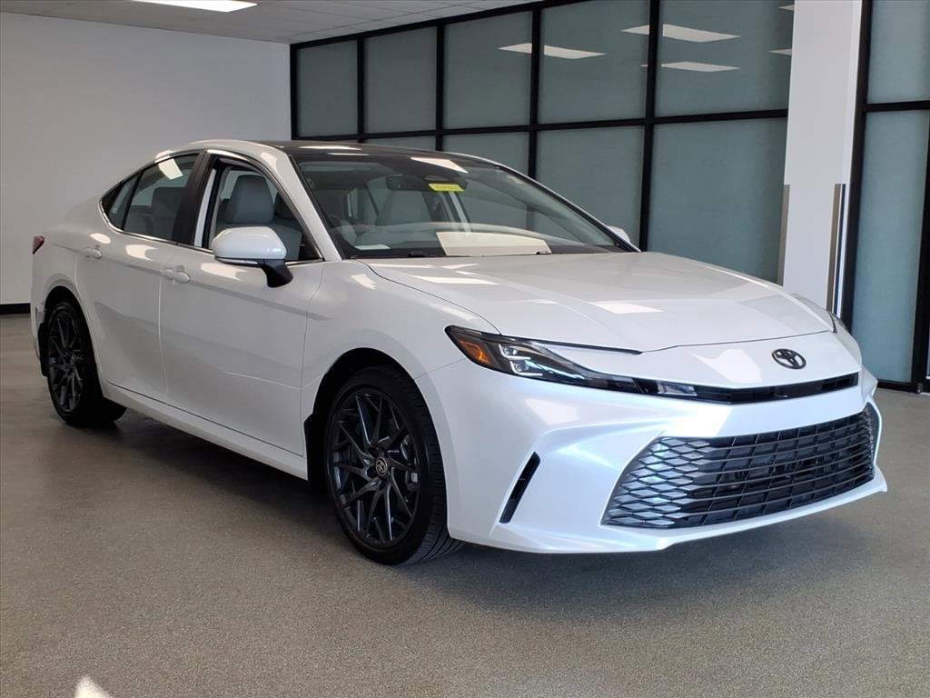Proudly serving Cincinnati, Florence, Alexandria, Dayton, Hamilton, Dry Ridge, Lexington, Louisville, Nicholasville. Certified. Wind Chill Pearl 2025 Toyota Camry XLE AWD eCVT 2.5L 4-Cylinder 16V DOHC 6 Speakers, ABS brakes, Alloy wheels, AM/FM radio: SiriusXM, Apple CarPlay/Android Auto, Auto High-beam Headlights, Auto-dimming Rear-View mirror, Black Badge Overlays (TMS), Brake assist, Bumpers: body-color, Dashcam (TMS), Delay-off headlights, Door Edge Guard (TMS), Electronic Stability Control, Emergency communication system: Safety Connect (up to 10-year trial subscription), Exterior Parking Camera Rear, Front dual zone A/C, Fully automatic headlights, Garage door transmitter: HomeLink, Heated door mirrors, Heated Front Bucket Seats, Heated front seats, Heated steering wheel, Illuminated Door Sills (TMS), Illuminated entry, Illuminated Trunk Sill (TMS), Knee airbag, Leather Shift Knob, Leather steering wheel, Leather/Dinamica Microfiber Seat Trim, Low tire pressure warning, Mudguards (TMS), Paint Protection Film (TMS), Panic alarm, Panoramic Glass Roof, Passenger door bin, Power door mirrors, Radio data system, Radio: Toyota Audio Multimedia w/12.3" Touchscreen, Rear Bumper Applique (TMS), Remote keyless entry, Security system, Speed control, Traction control, Trunk LED Bulb (TMS), Turn signal indicator mirrors, Variably intermittent wipers, Wheels: 18" Black & Machine-Finished Alloy, Wheels: 19" Gray Metallic (TMS) (PPO).